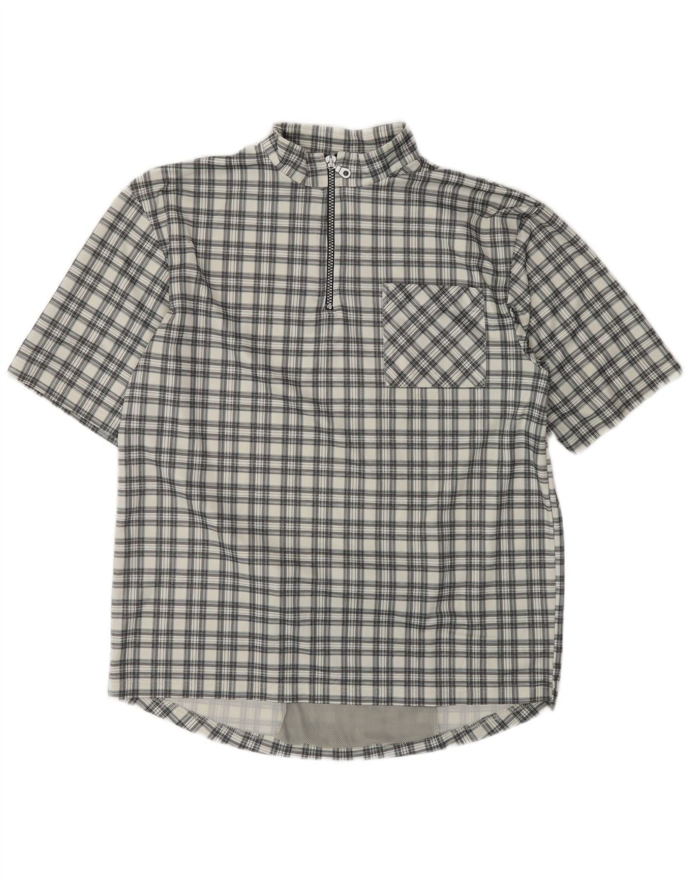 VINTAGE Chemise pull à manches courtes pour hommes grand polyester à carreaux gris