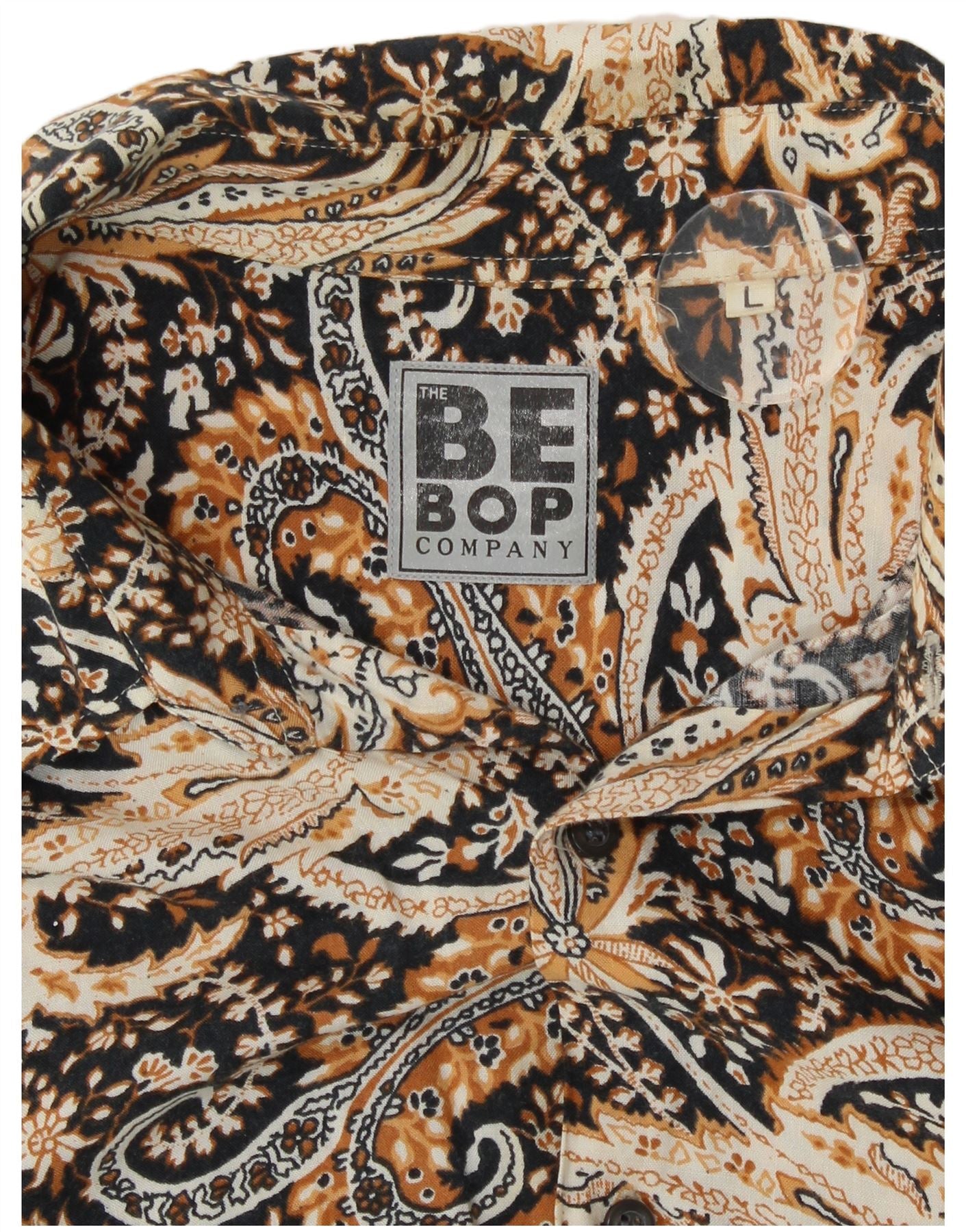 vintage Chemise à manches courtes pour hommes Grand Paisley Noir