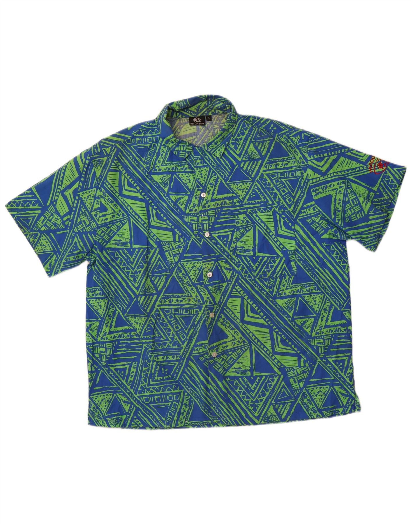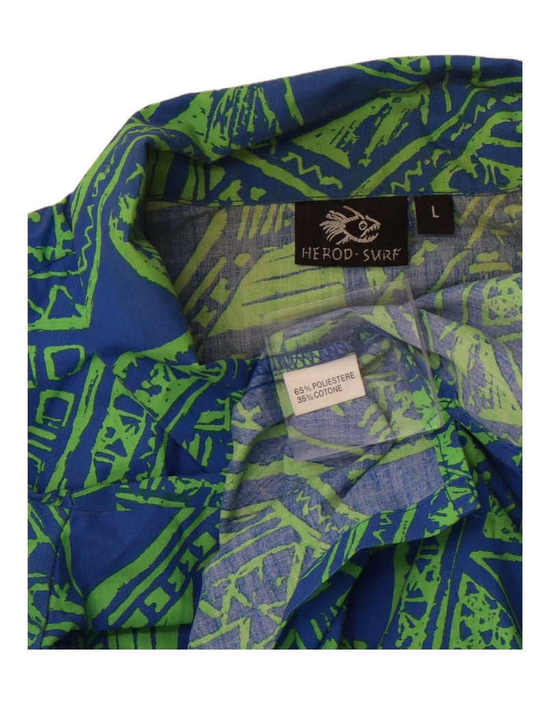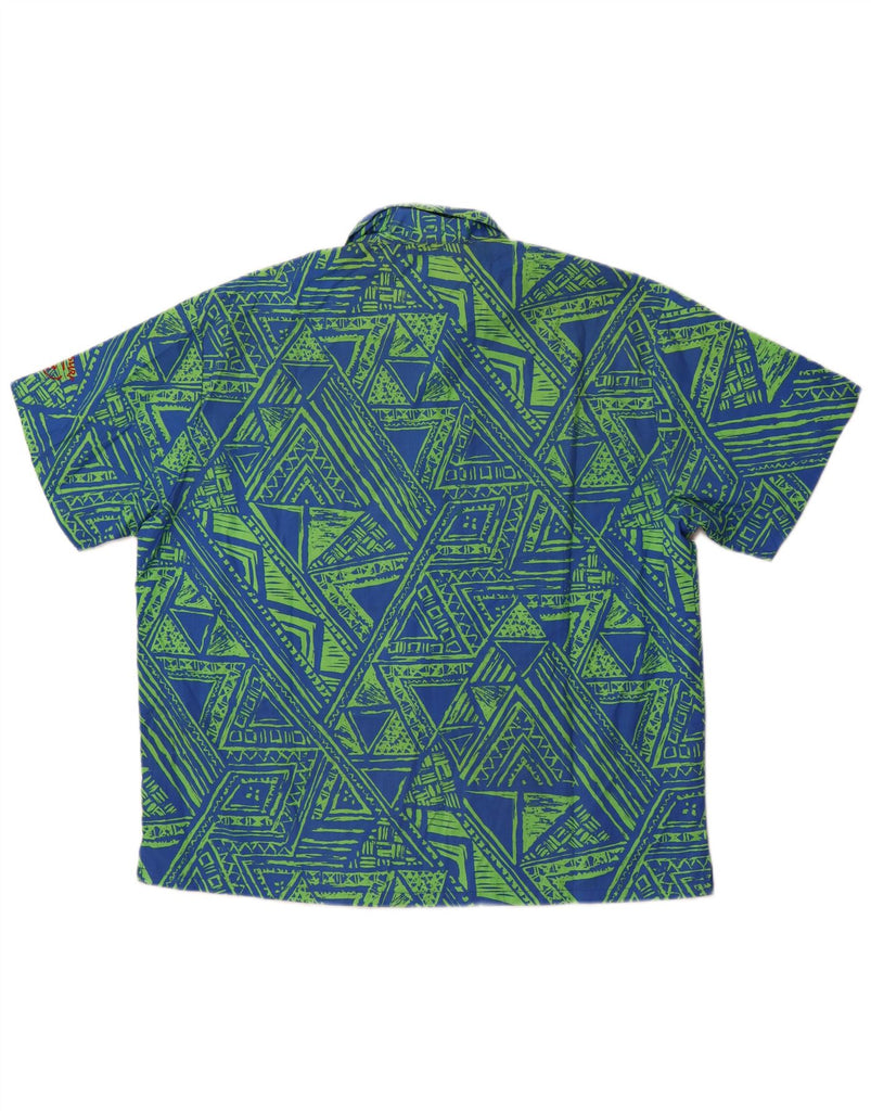 VINTAGE Chemise à manches courtes pour hommes Grand polyester géométrique bleu