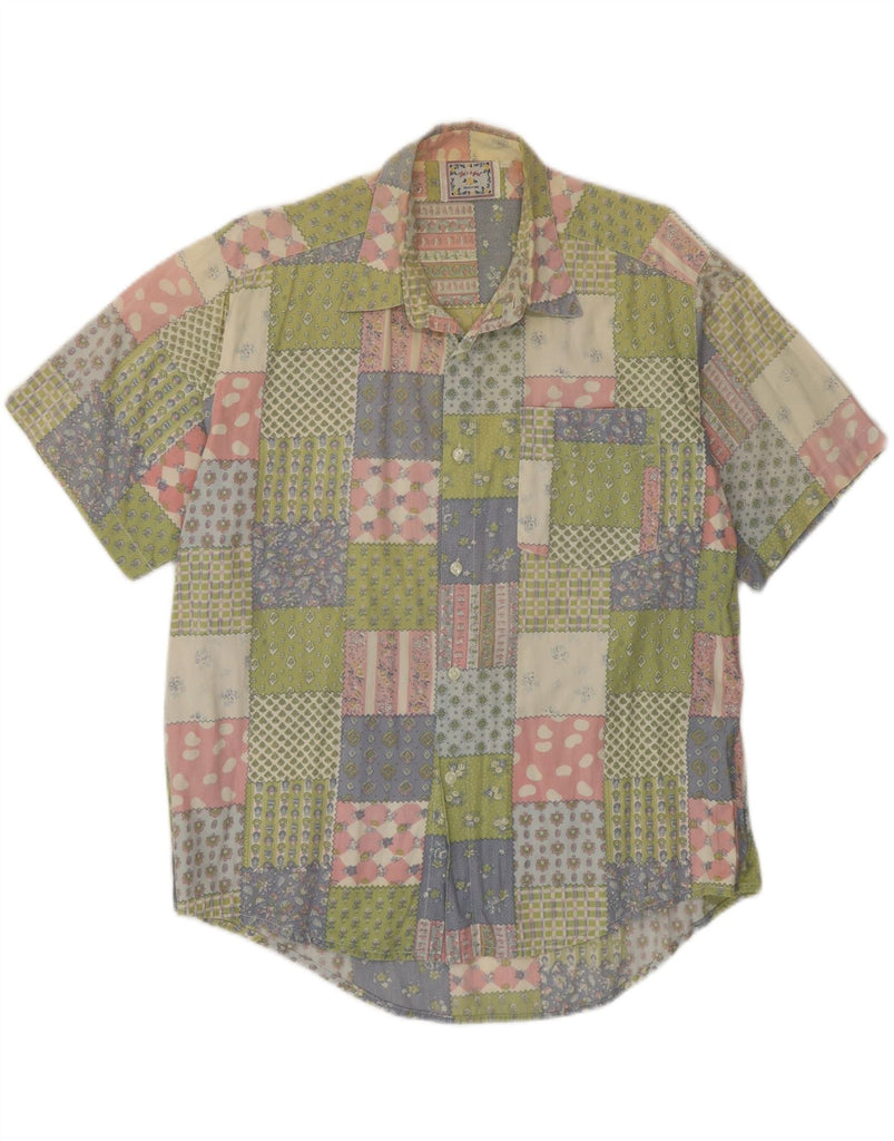 VINTAGE Chemise à manches courtes pour homme en coton patchwork multicolore moyen