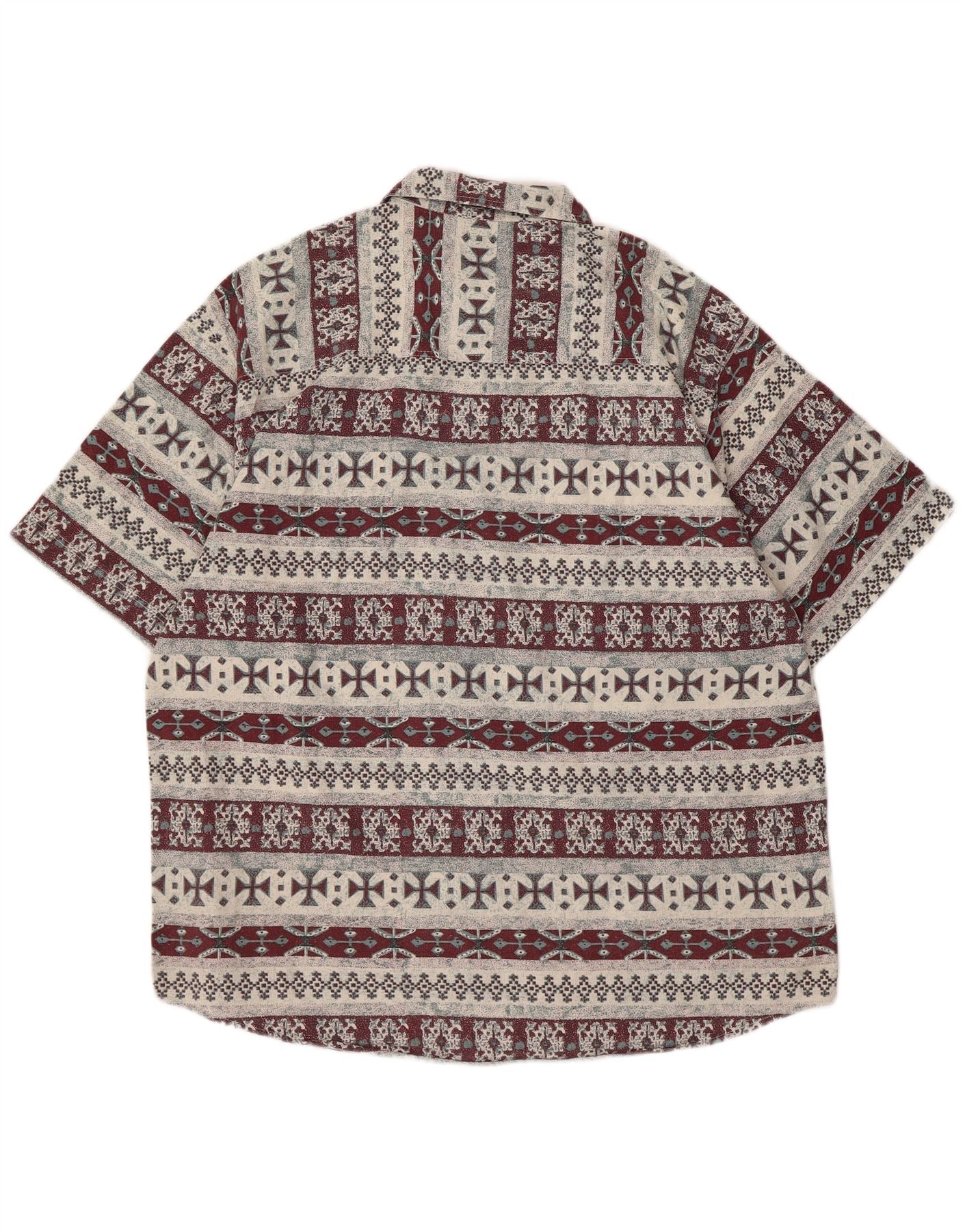 vintage Chemise à manches courtes pour hommes XL Bordeaux Géométrique Aztèque