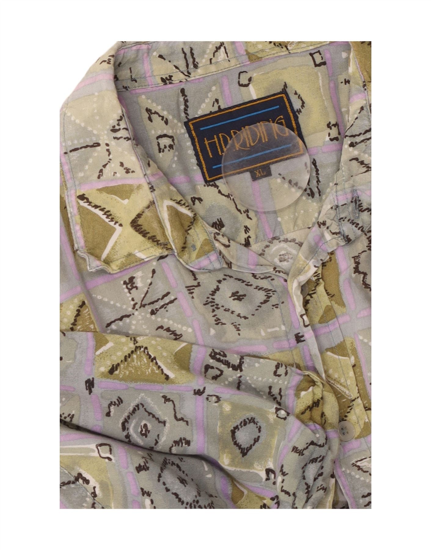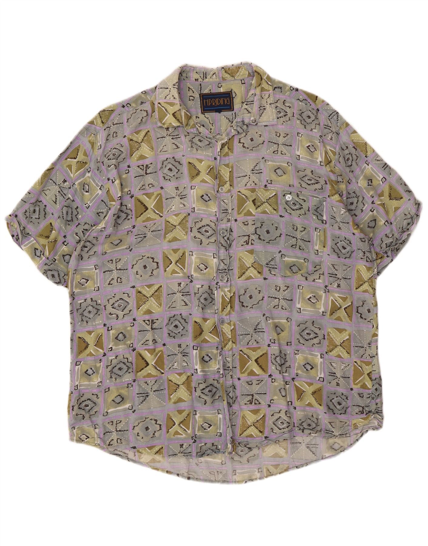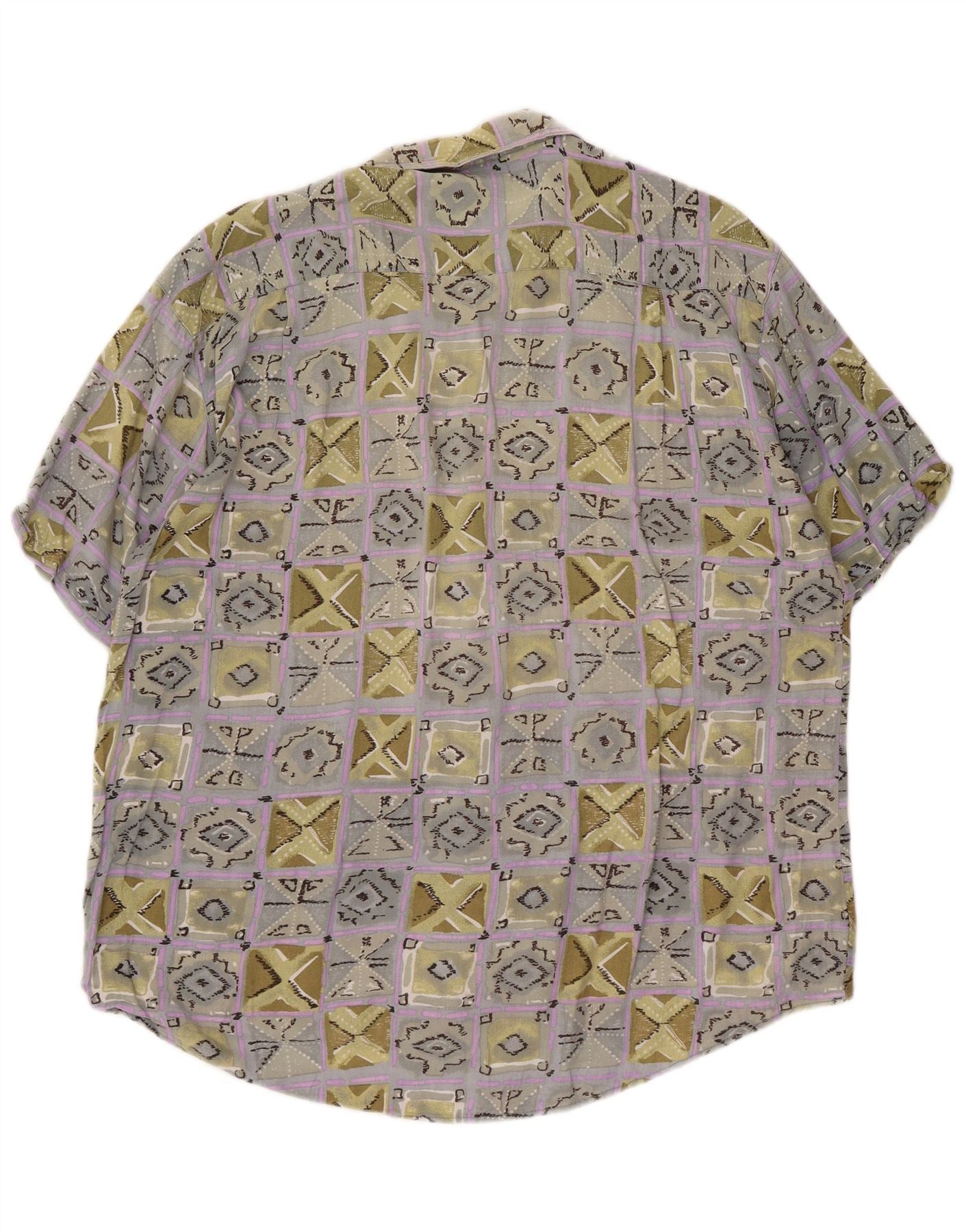 VINTAGE Chemise Manches Courtes Homme XL Viscose Géométrique Multicolore