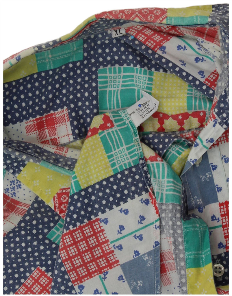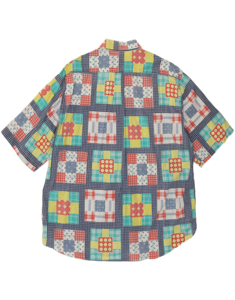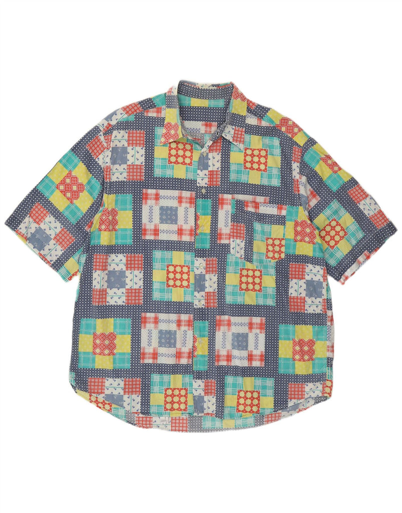 VINTAGE Chemise à Manches Courtes Homme XL Multicolore Patchwork Coton