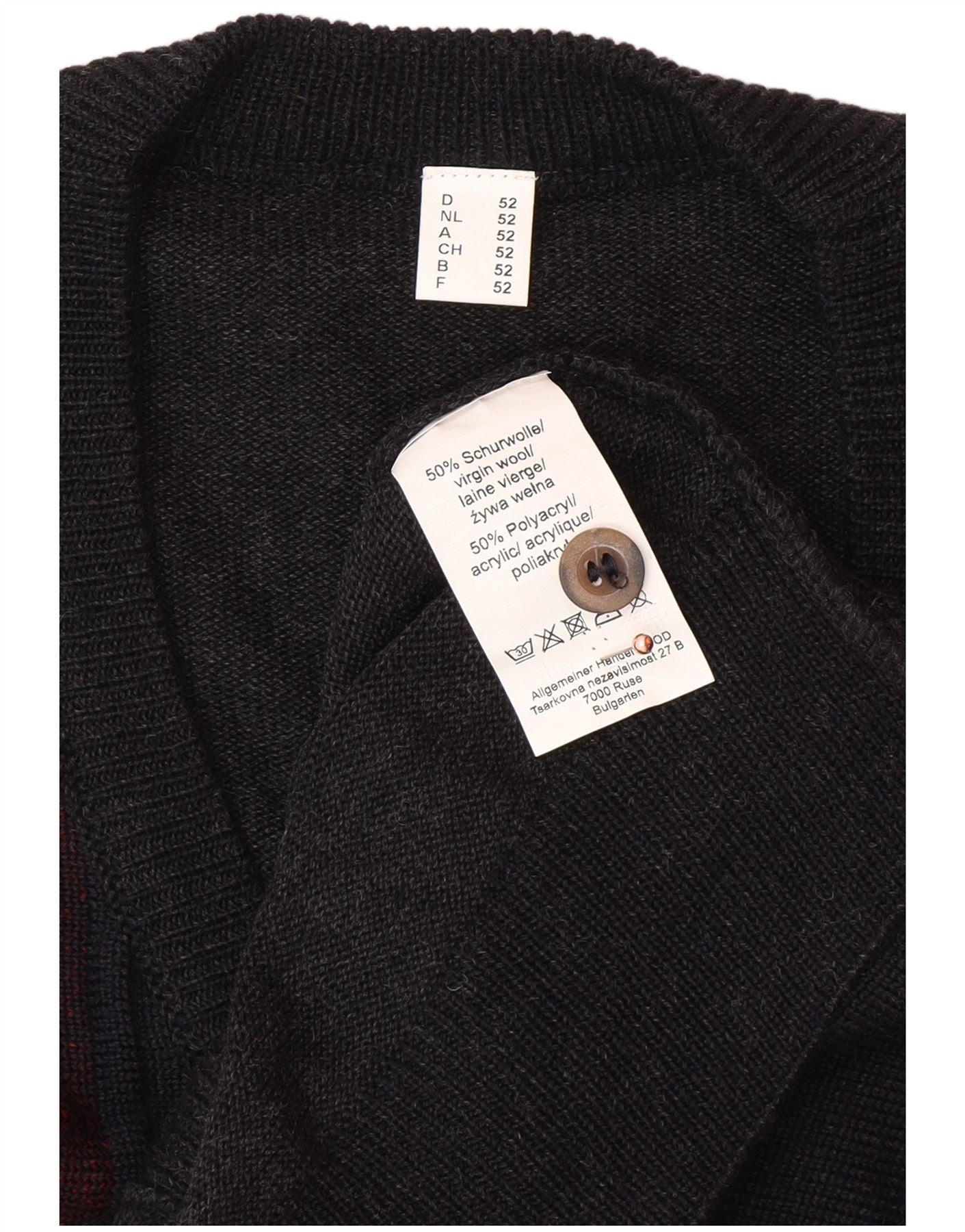 VINTAGE Pull cardigan sans manches pour homme IT 52 Grand Gris Argyle/Diamant