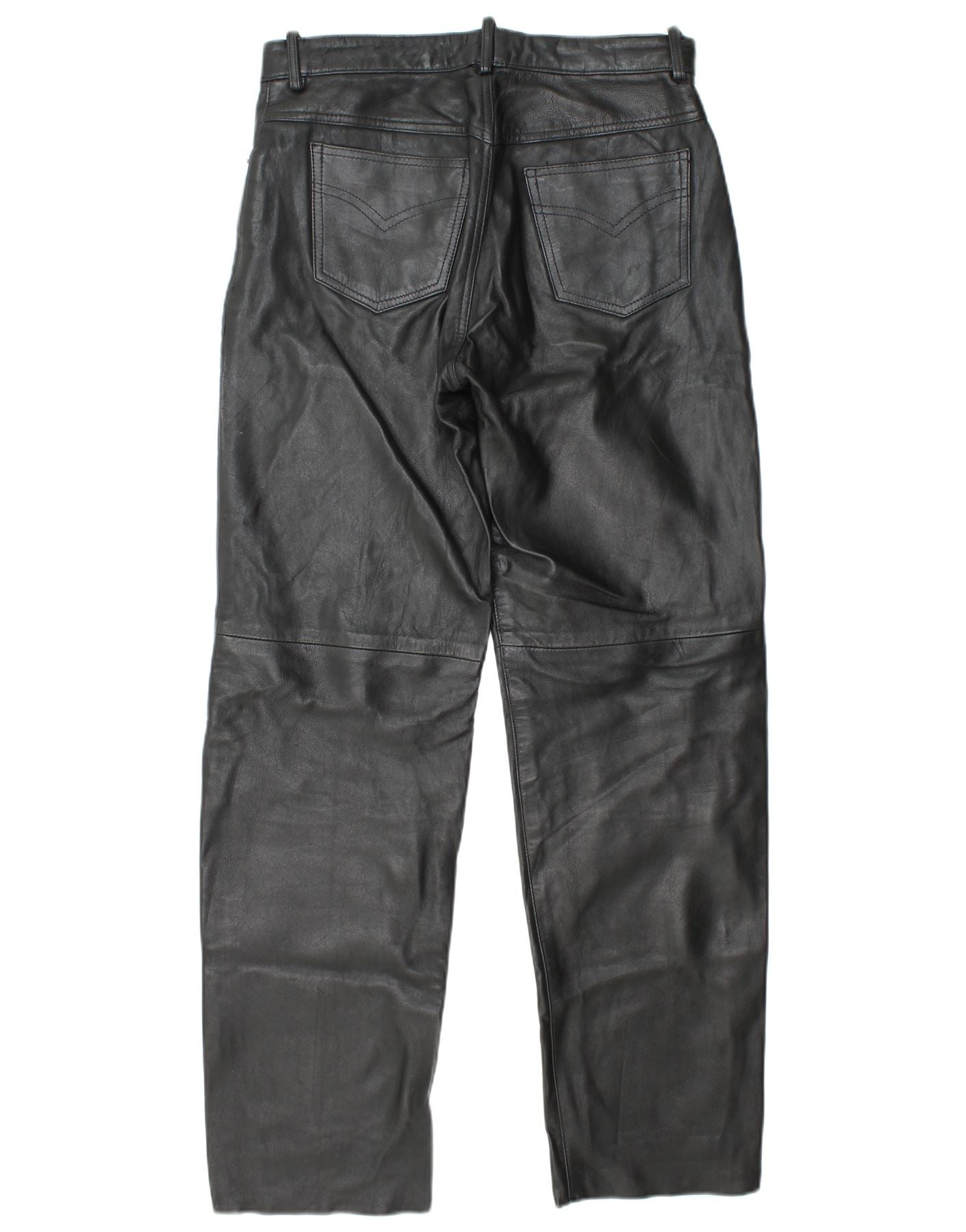 VINTAGE Pantalon droit en cuir pour homme W30 L32 Cuir noir