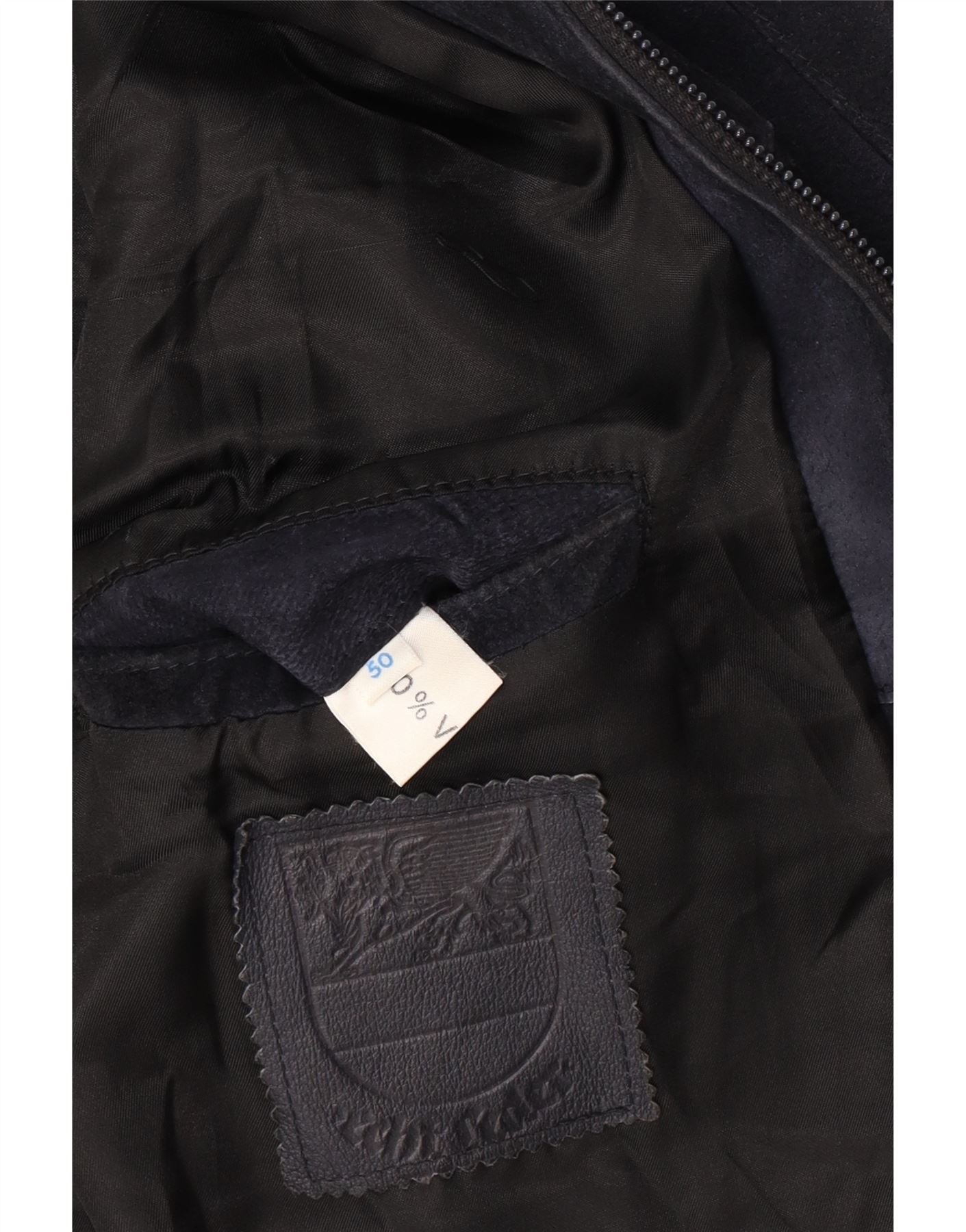 VINTAGE Veste Bomber En Daim Homme IT 50 Grand Cuir Bleu Marine