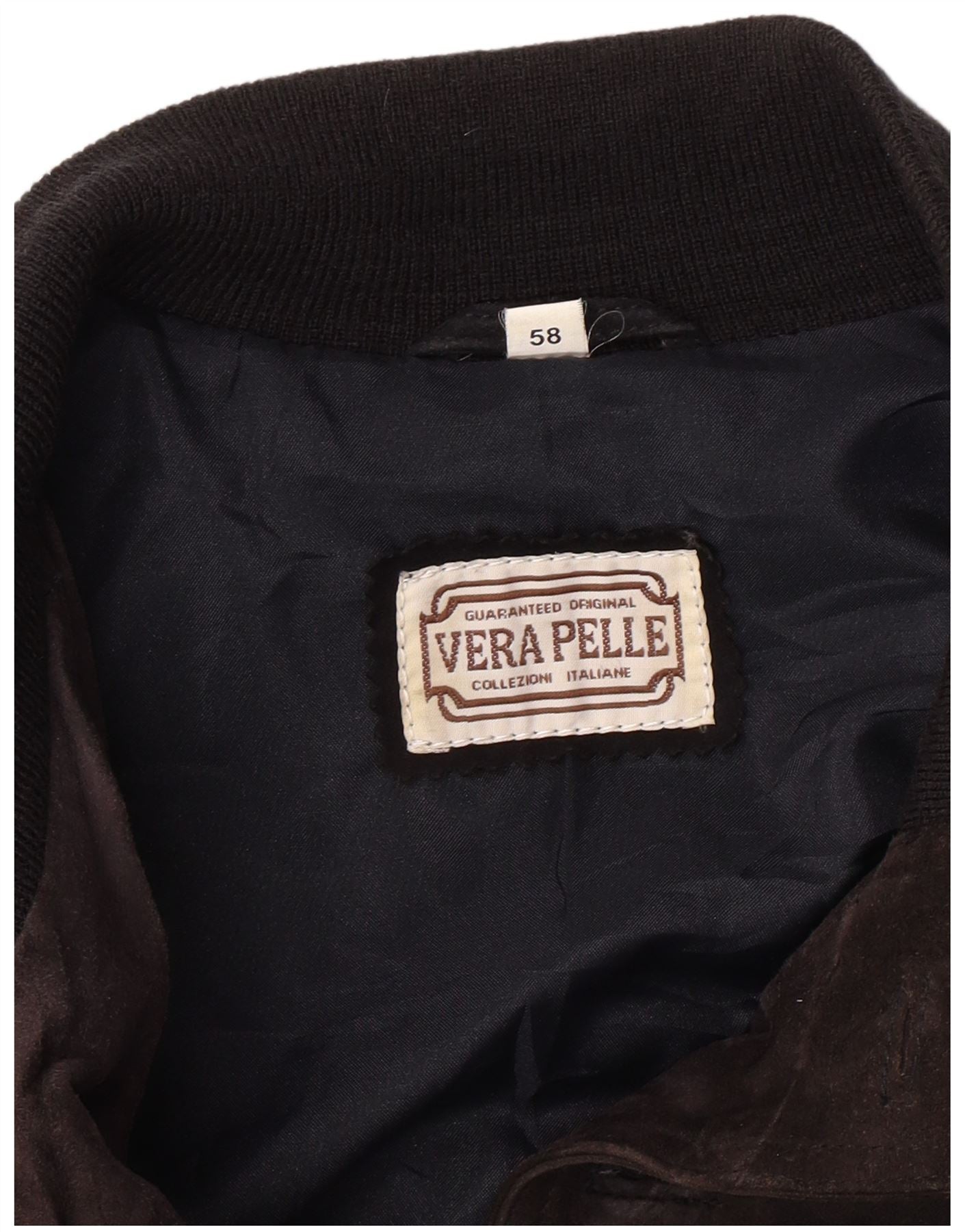 VINTAGE Veste Bomber En Daim Homme IT 58 4XL Cuir Bleu Marine