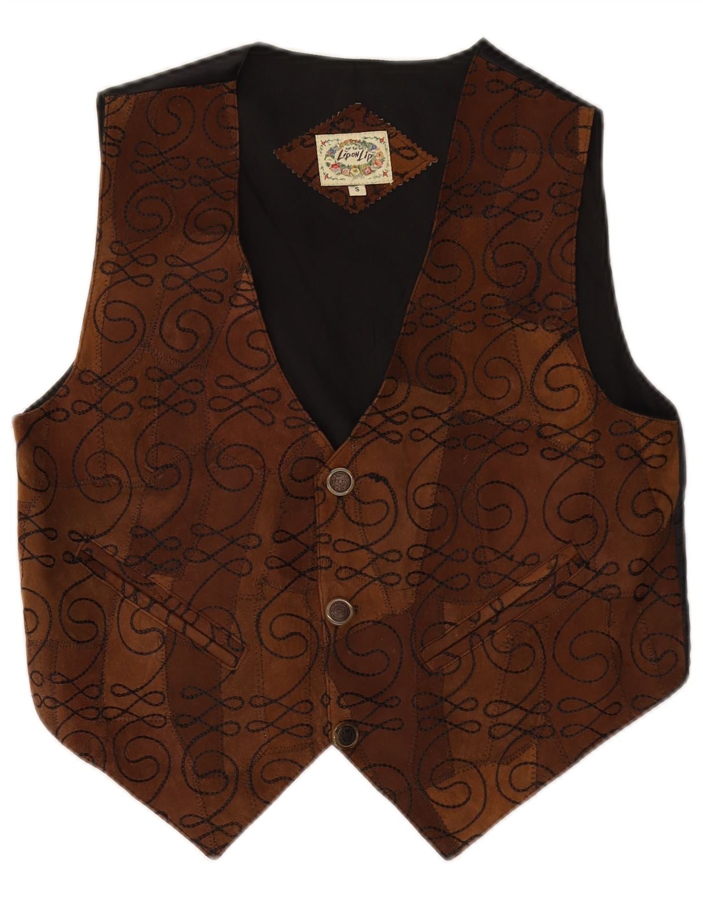 VINTAGE Gilet en Daim Homme Petit Cuir Paisley Marron