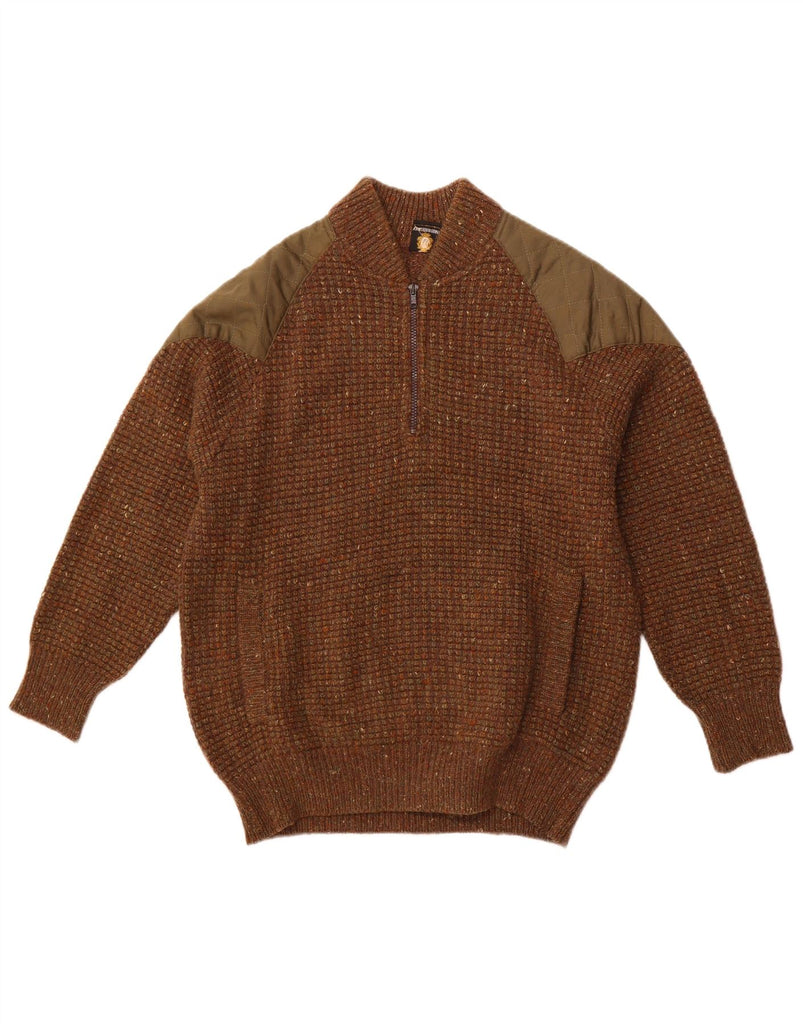 VINTAGE Homme Col Roulé Pull Pull IT 52 Grande Laine Mouchetée Marron