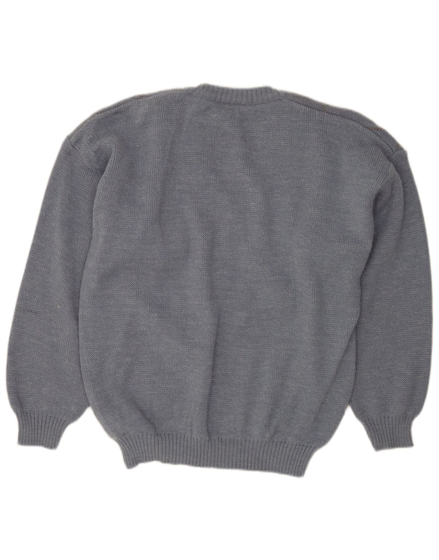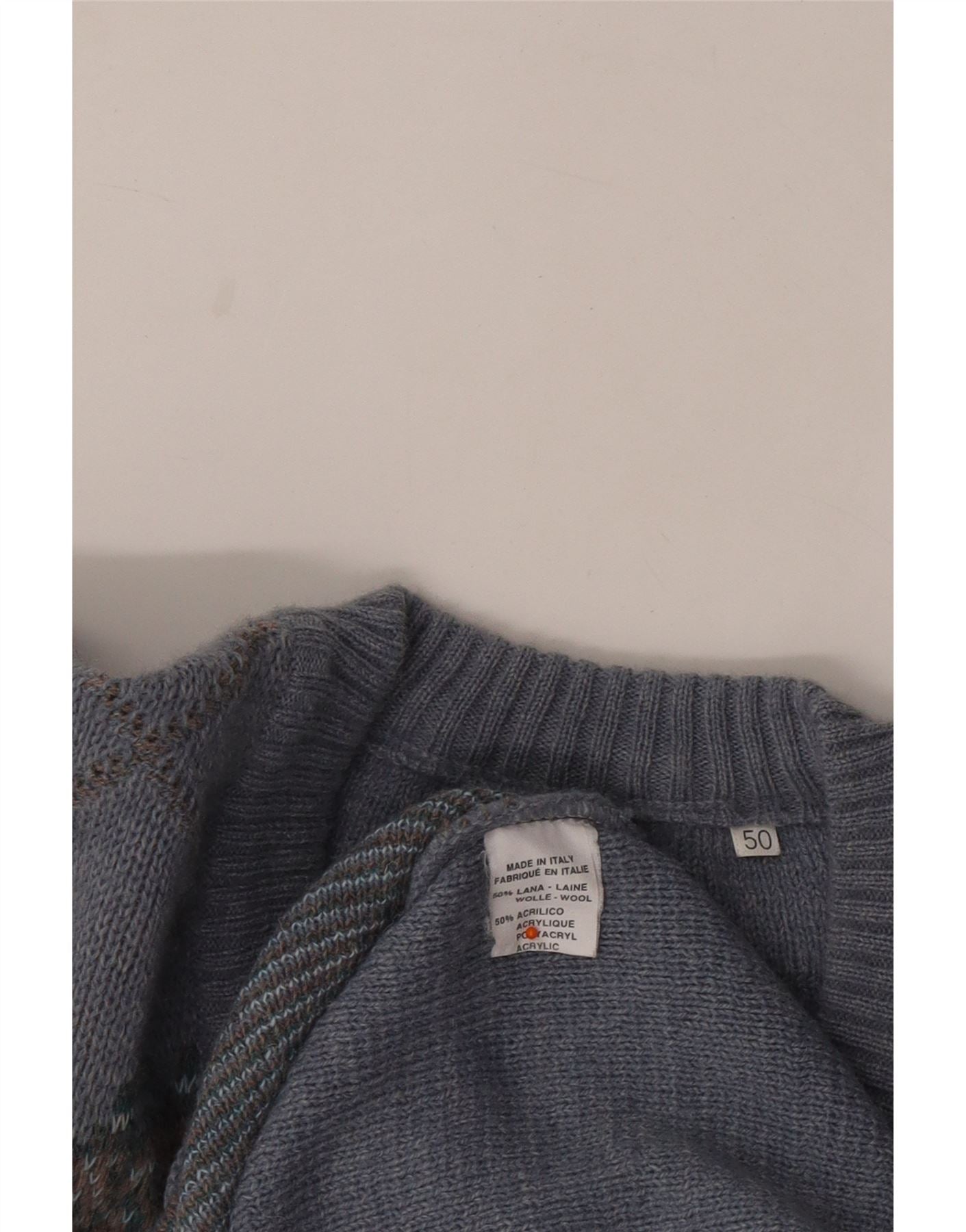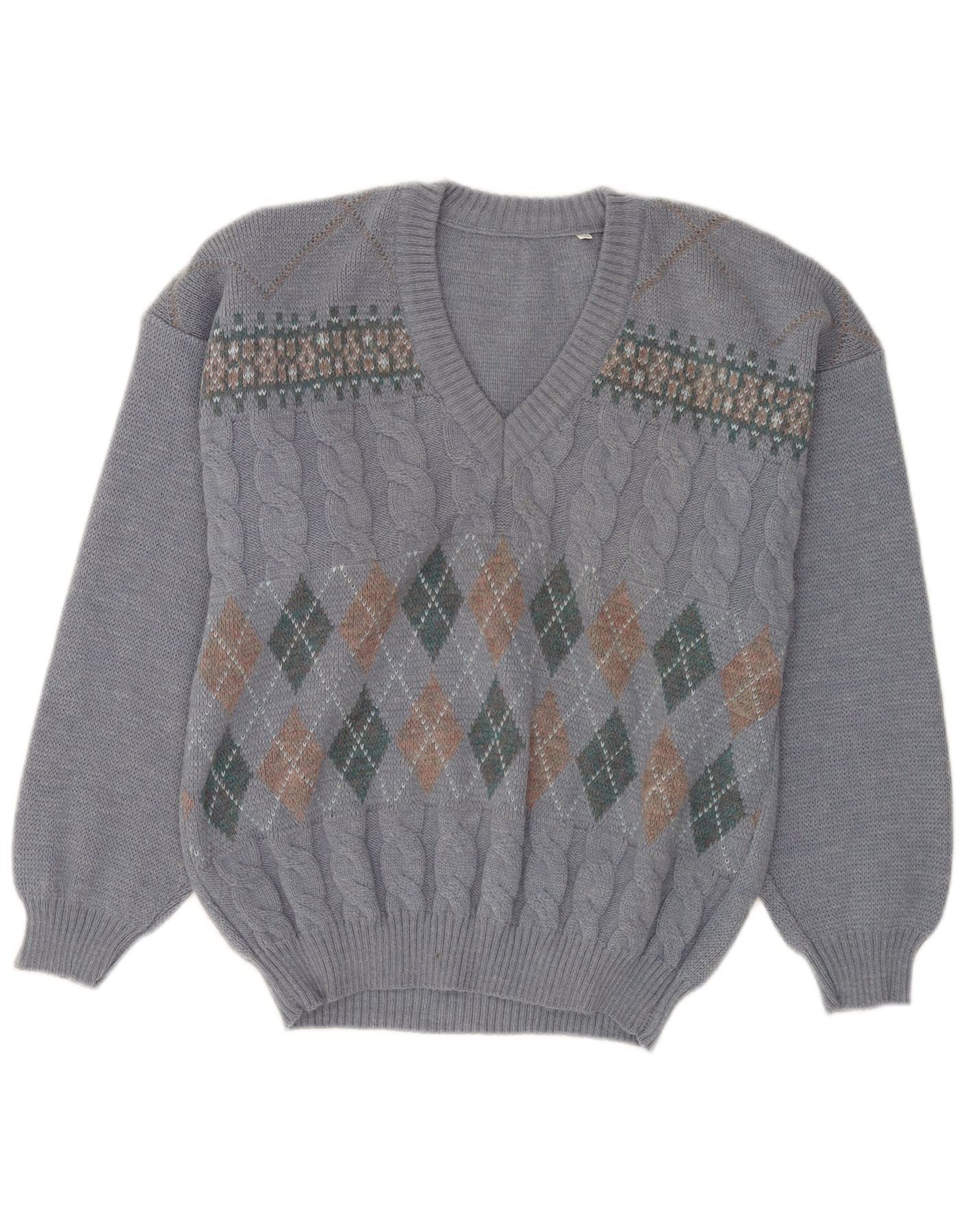 VINTAGE Pull col V pour homme IT 50 Laine Argyle/Diamant Bleu Moyen