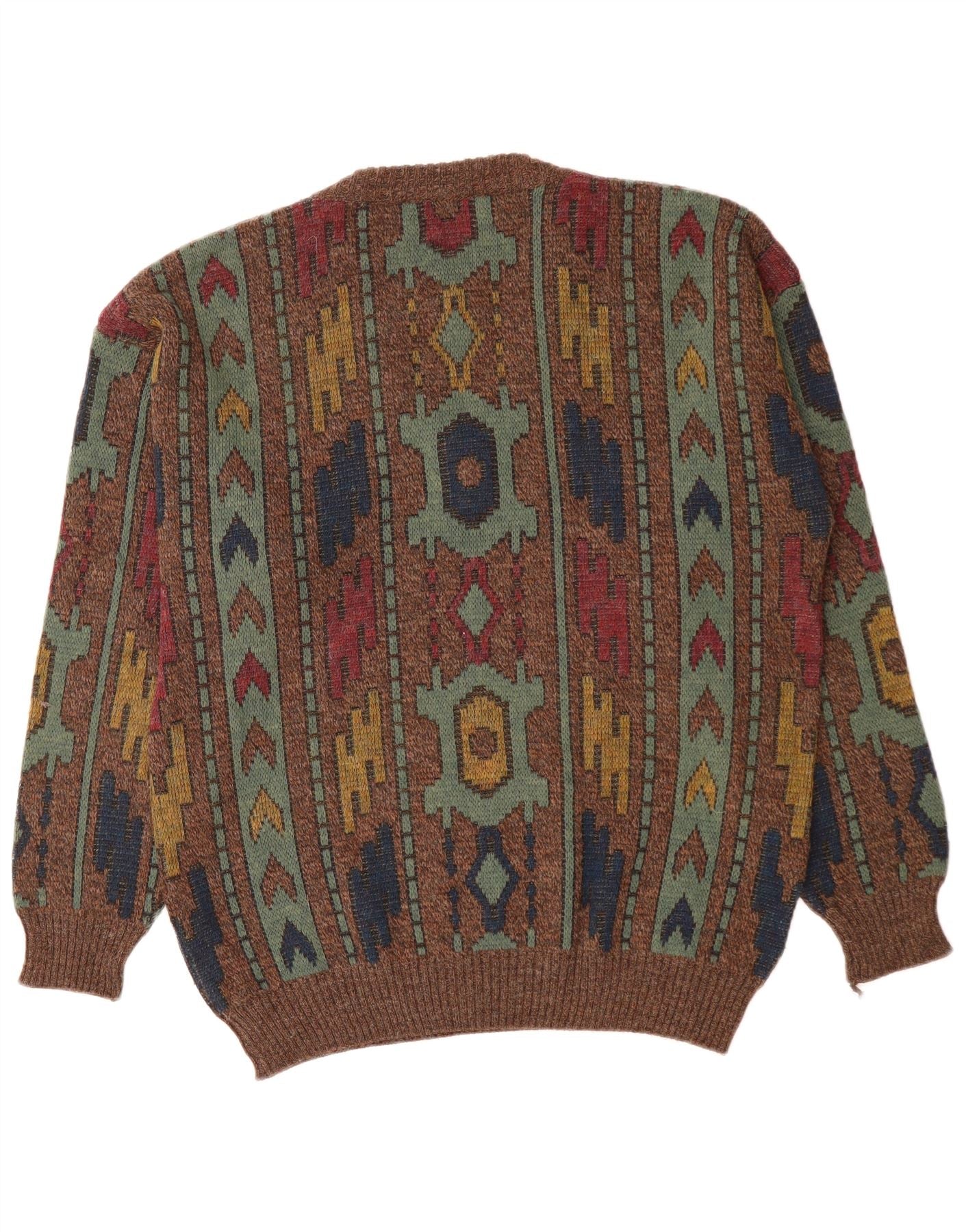 VINTAGE Pull col V pour homme IT 50 Marron moyen géométrique