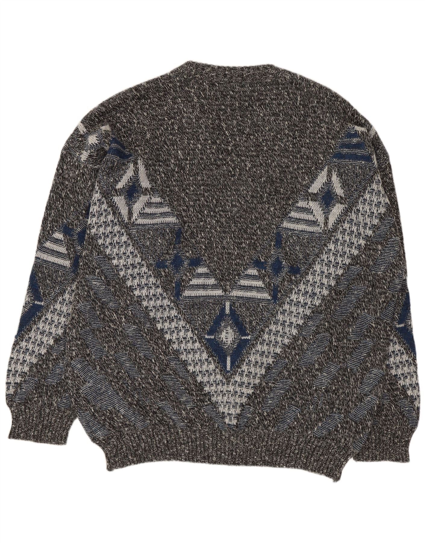 VINTAGE Pull col V pour homme UK 46/48 2XL Géométrique multicolore