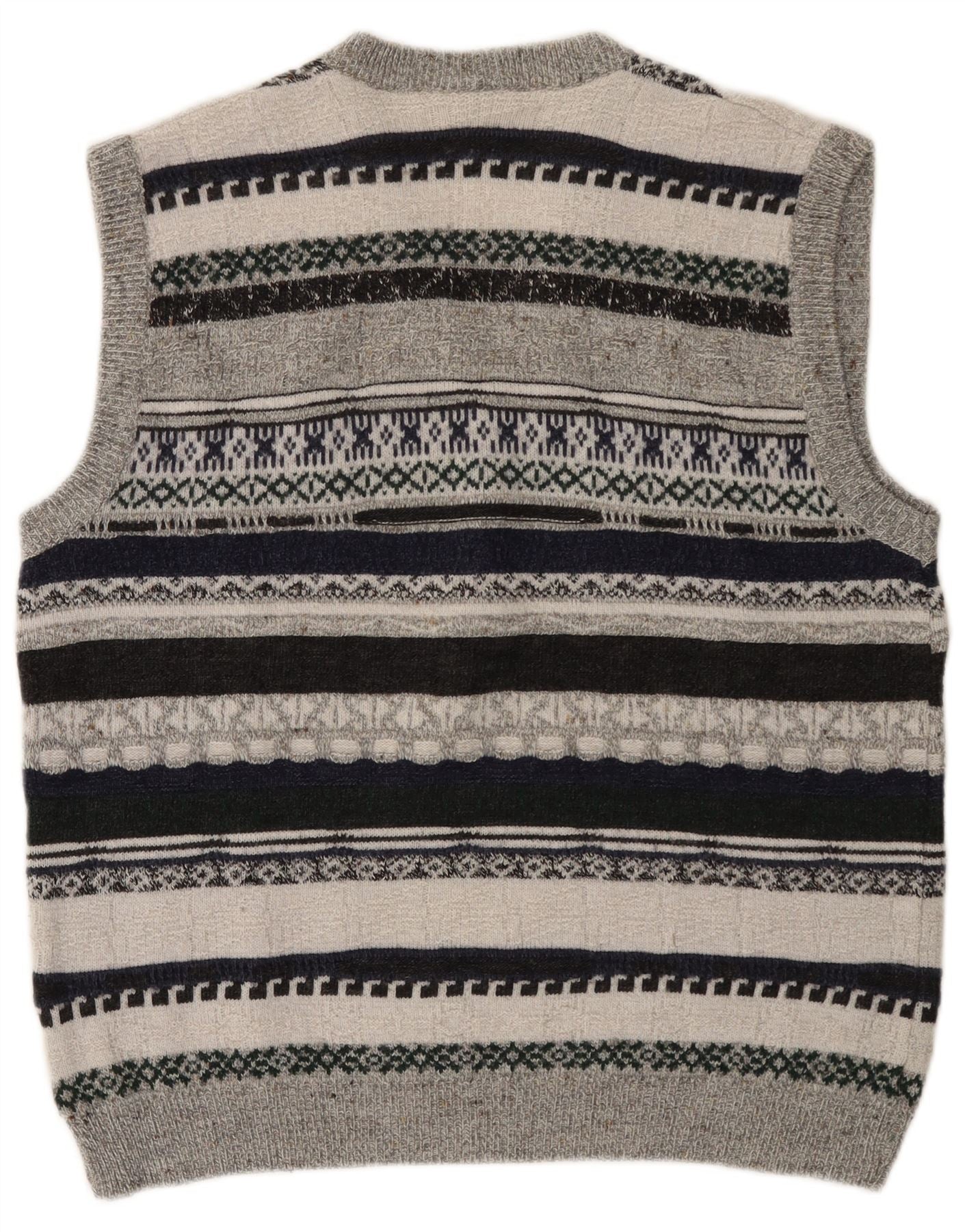 VINTAGE Débardeur Homme Débardeur Gris Moyen Rayé Polyacrylique