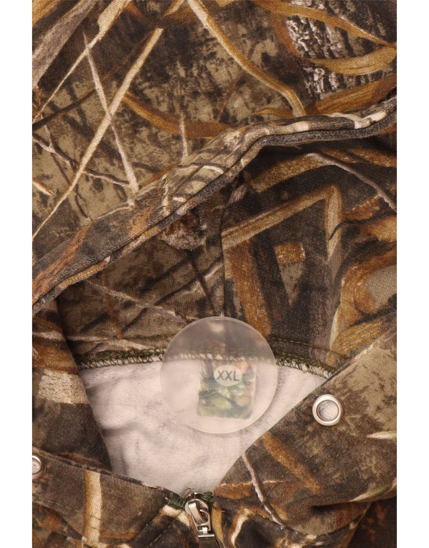 VINTAGE Pull à capuche zippé pour homme 2XL Marron Camouflage Polyester
