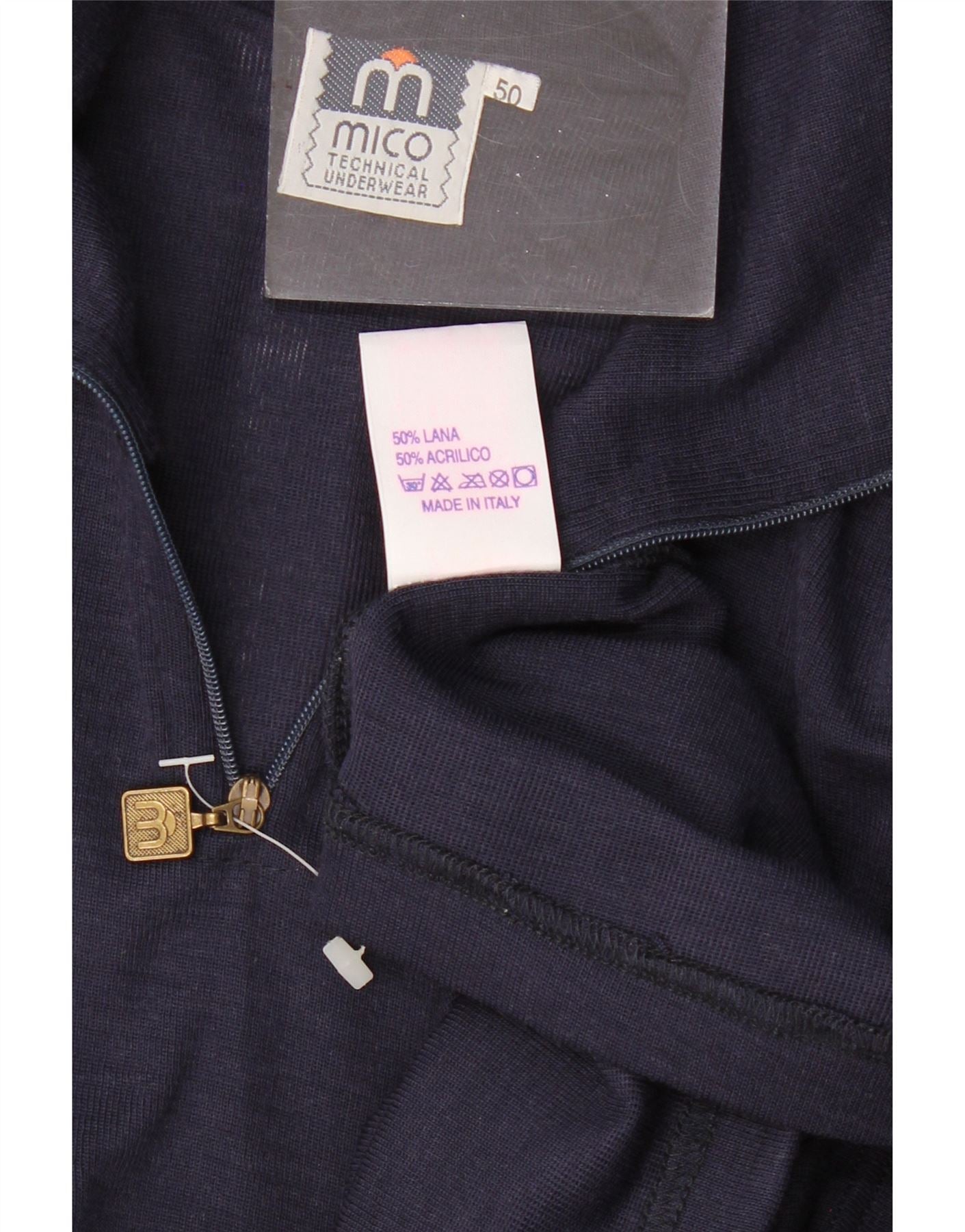 vintage Homme Zip Neck Jumper Pull IT 50 Laine Bleu Marine Moyenne