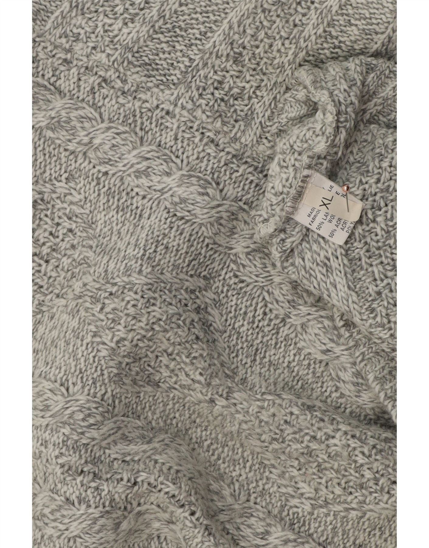 VINTAGE Pull col zippé homme XL laine grise