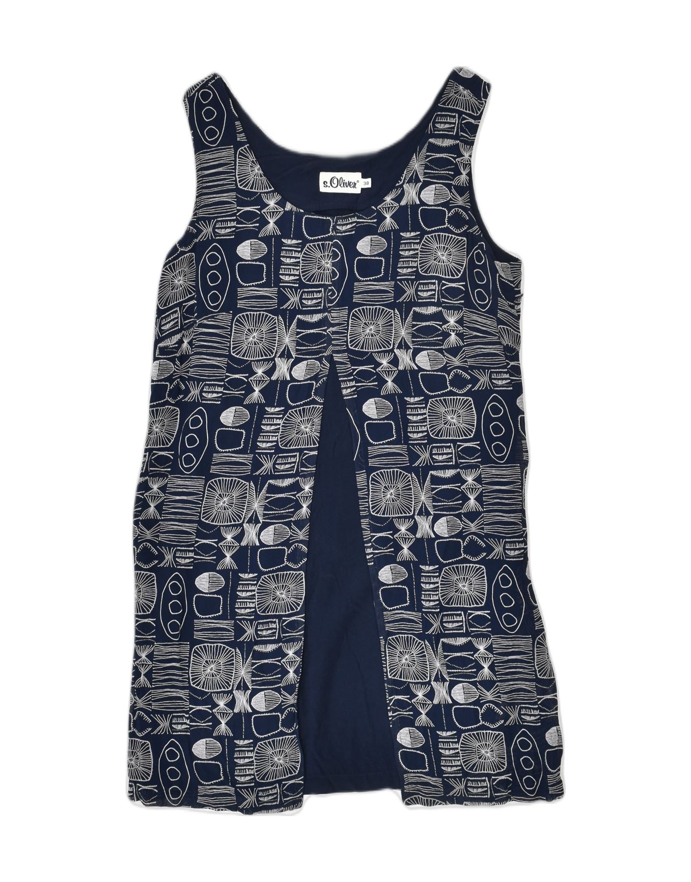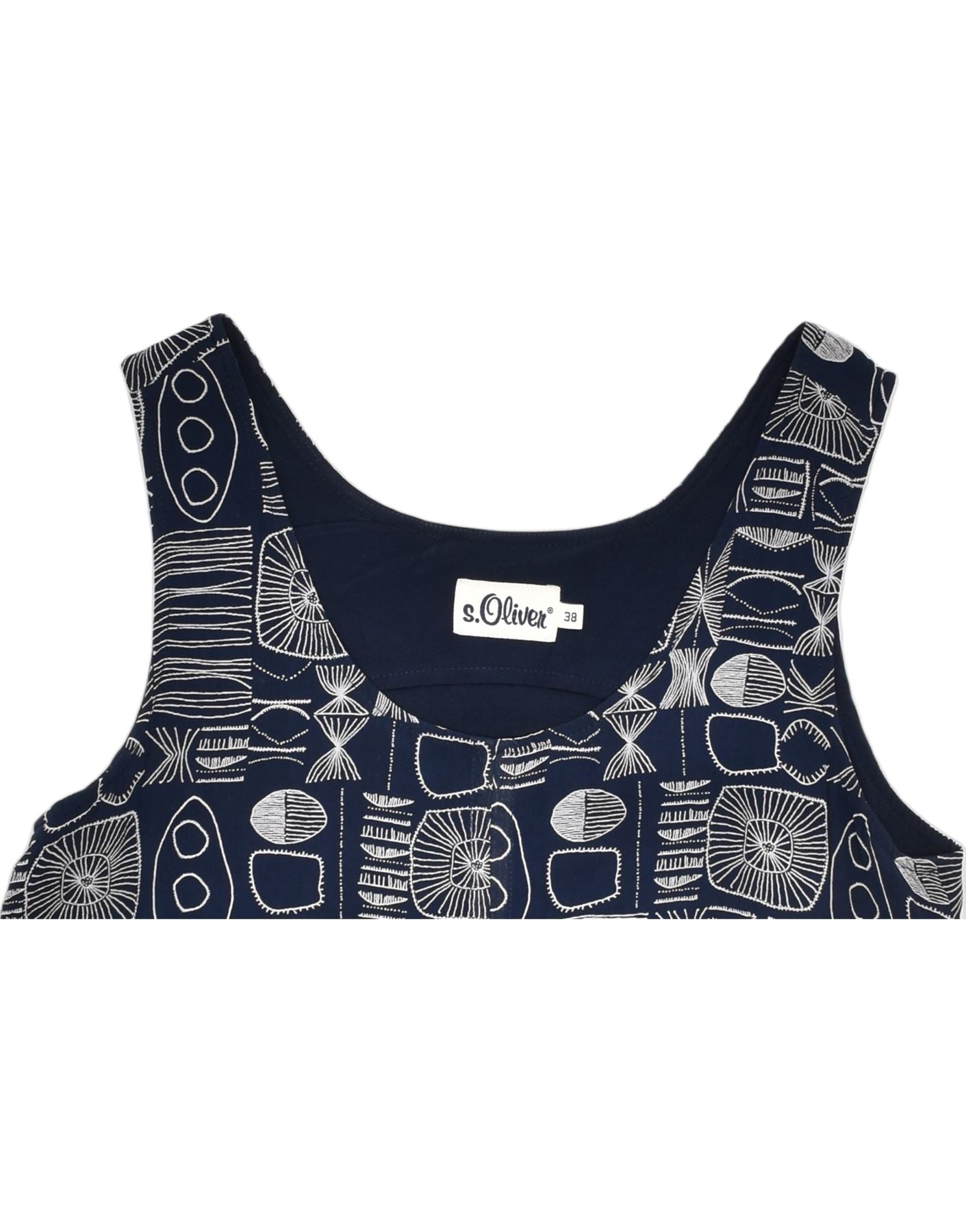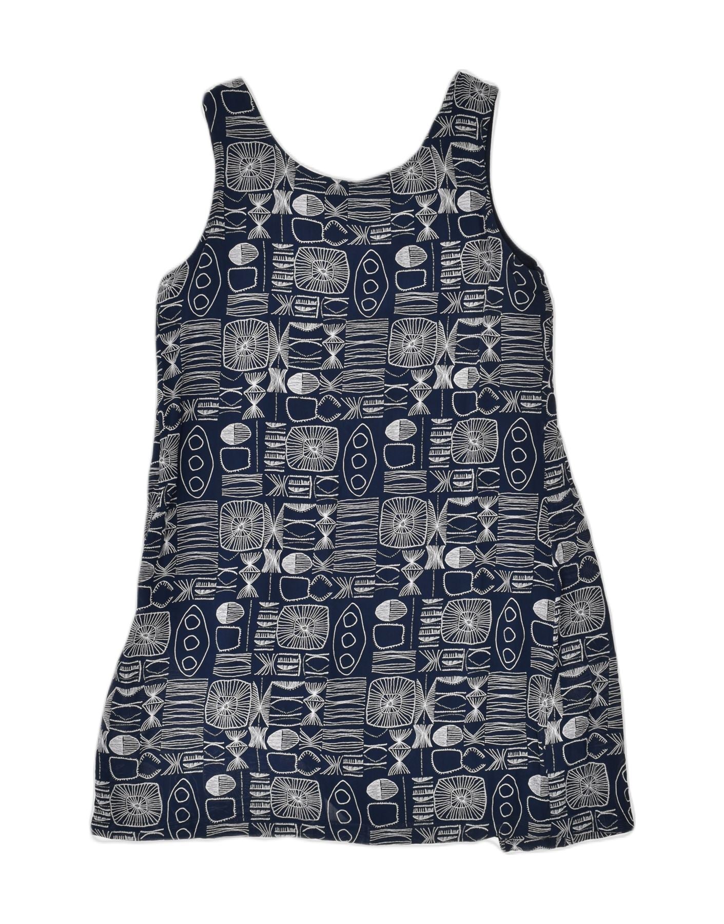 VINTAGE Robe basique femme EU 38 Petite Viscose Géométrique Bleu Marine