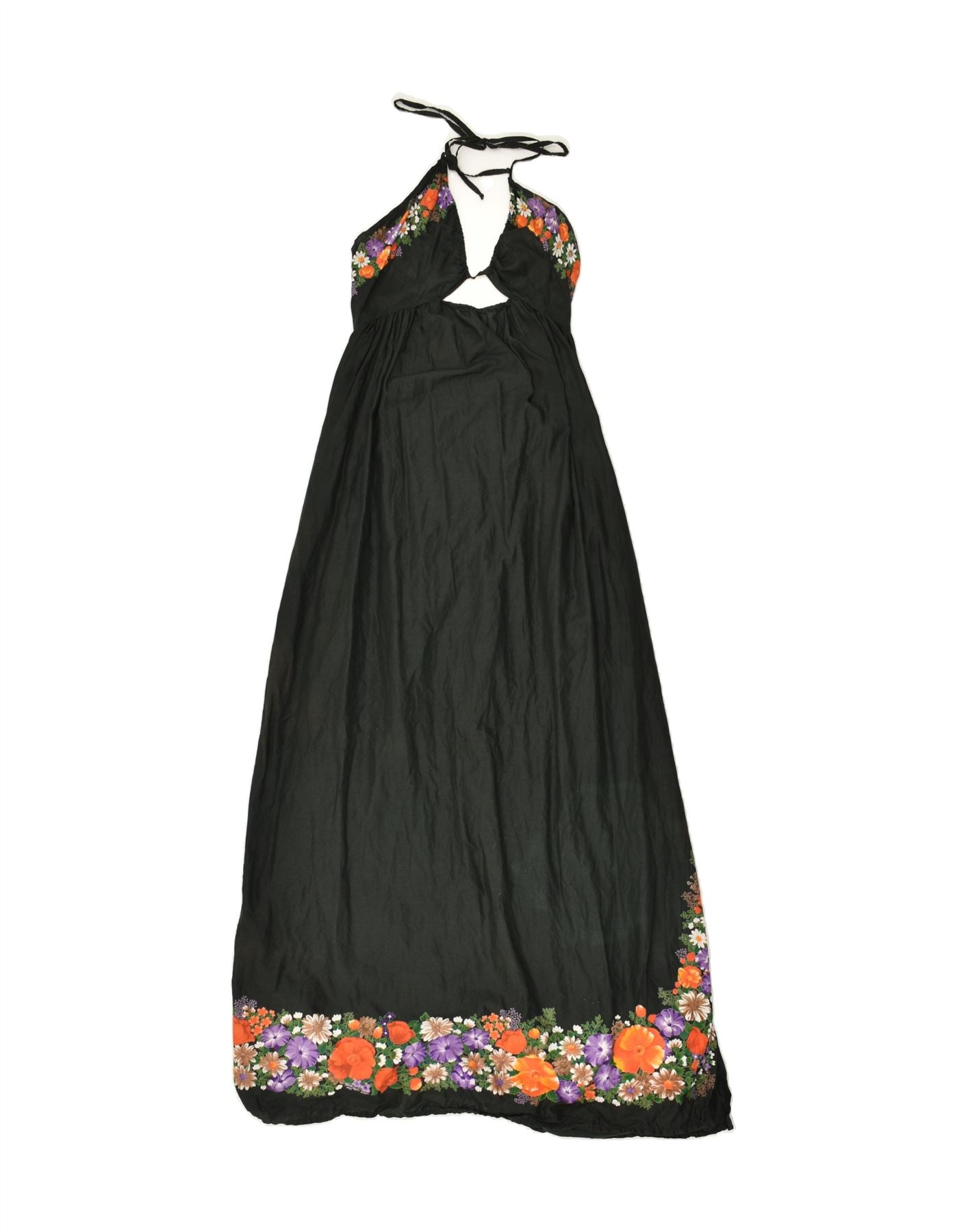 VINTAGE Robe longue sans manches pour femme UK 0 2XS Noir Floral