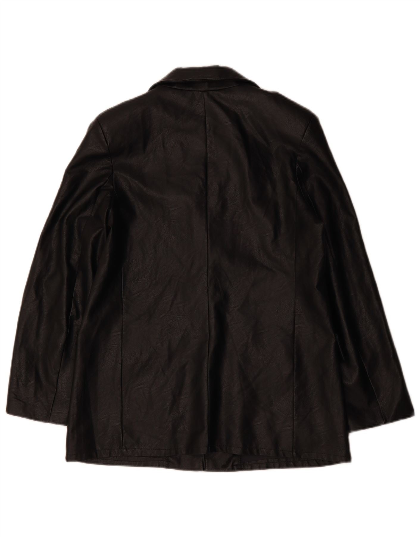 VINTAGE Femmes 1 Bouton Faux Cuir Blazer Veste UK 12 Moyen Noir