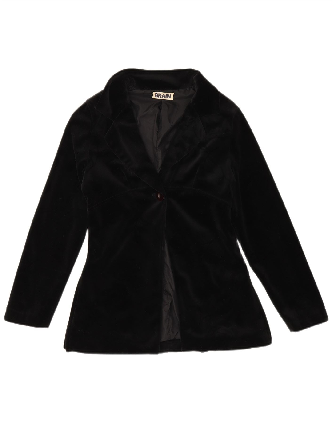 VINTAGE Femme 1 Bouton Velours Blazer Veste UK 12 Moyen Noir