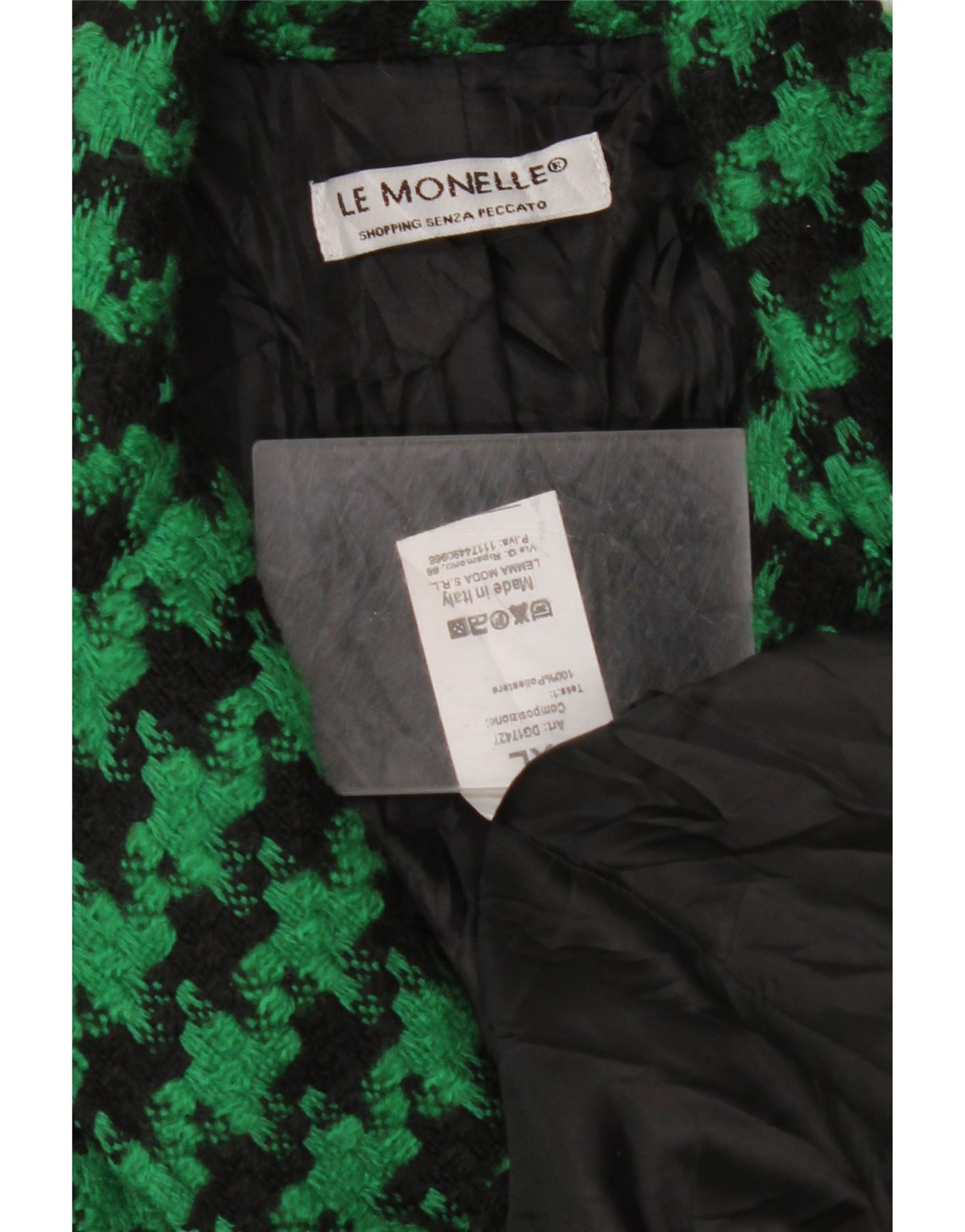 VINTAGE Femme 2 Bouton Blazer Veste UK 18 XL Vert Pied-de-Poule Polyester