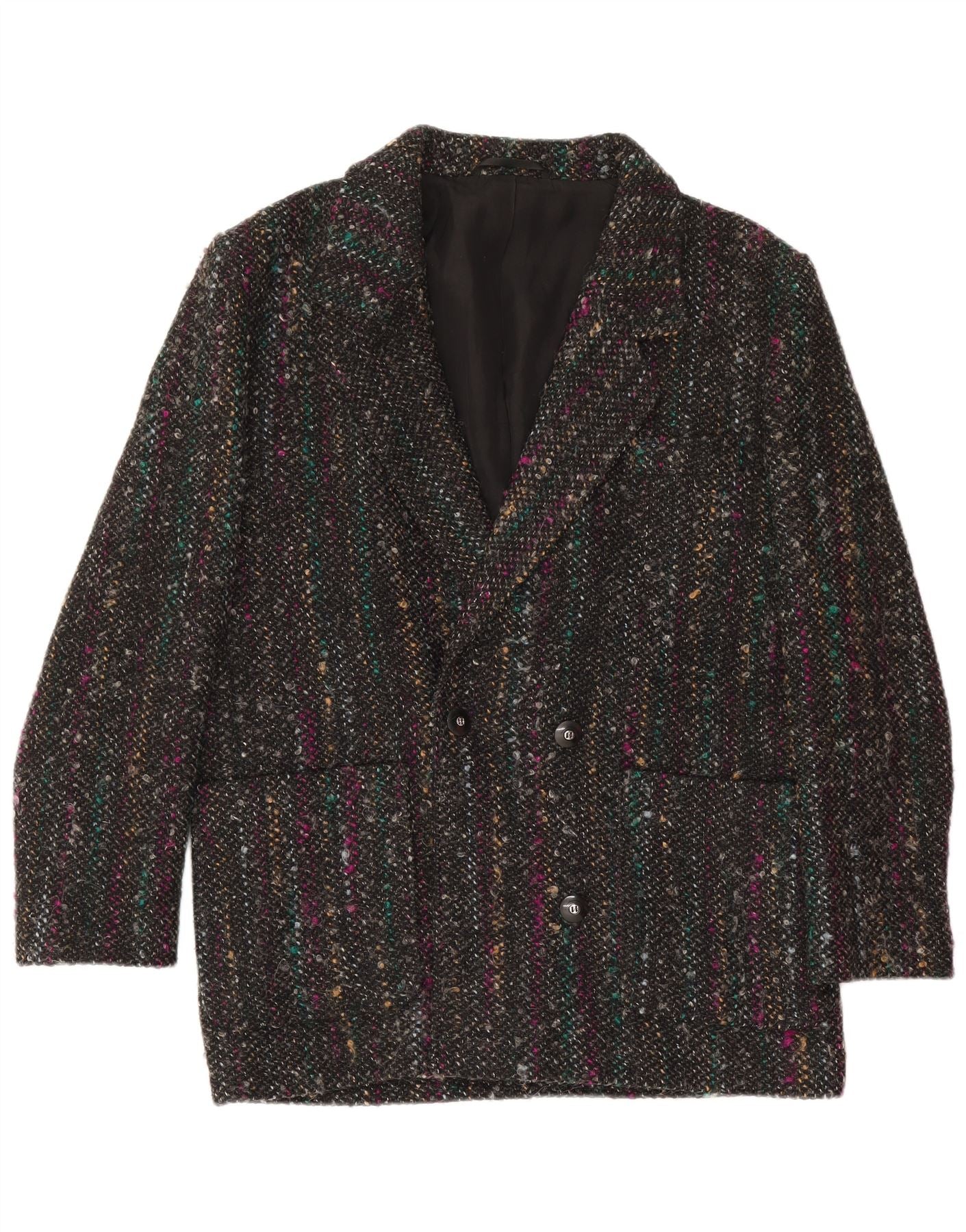- Description de l'IA : Cet ensemble jupe 2 pièces Vintage pour femme est confectionné à partir d'un luxueux tweed de laine mélangée noire, avec une composition à 80 % de laine et à 20 % de polyamide. Le tissu tricoté offre une sensation riche et texturée. Il présente un motif moucheté sophistiqué partout. La veste est à double boutonnage avec des fermetures à boutons classiques et une encolure à col. Des manches longues et une coupe régulière définissent la silhouette de la veste. La jupe assortie complète l'ensemble avec sa coupe cintrée. Les deux pièces sont entièrement doublées et comprennent des poches pratiques.