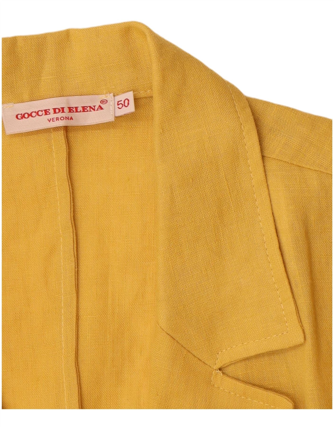 VINTAGE Femme Manches 3/4 2 Bouton Blazer Veste IT 50 XL Jaune