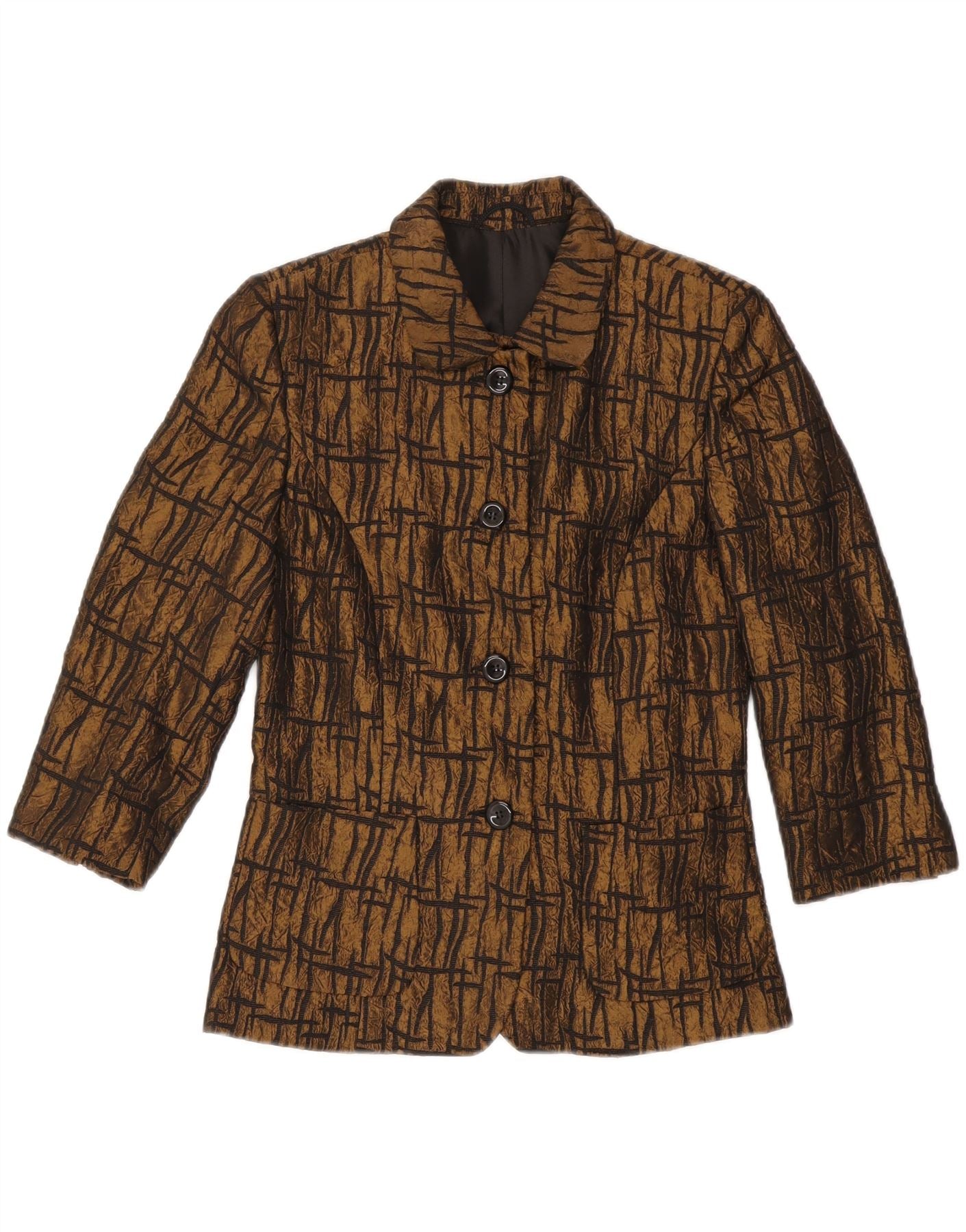 VINTAGE Femme 3/4 Manches Blazer Veste UK 10 Petit Marron Géométrique