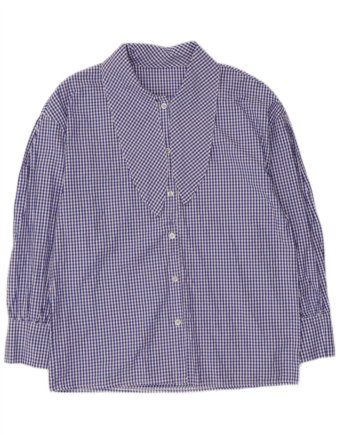 vintage Femmes 3/4 Manches Front Tie Shirt Blouse UK 14 Medium Blue Gingham