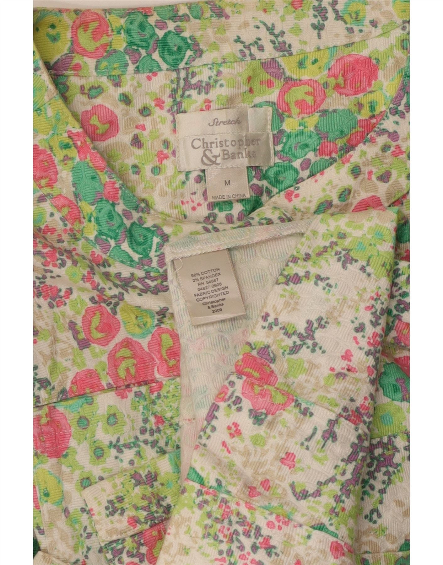 VINTAGE Femme 3/4 Manches Chemise Blouse UK 12 Moyen Multicolore Floral