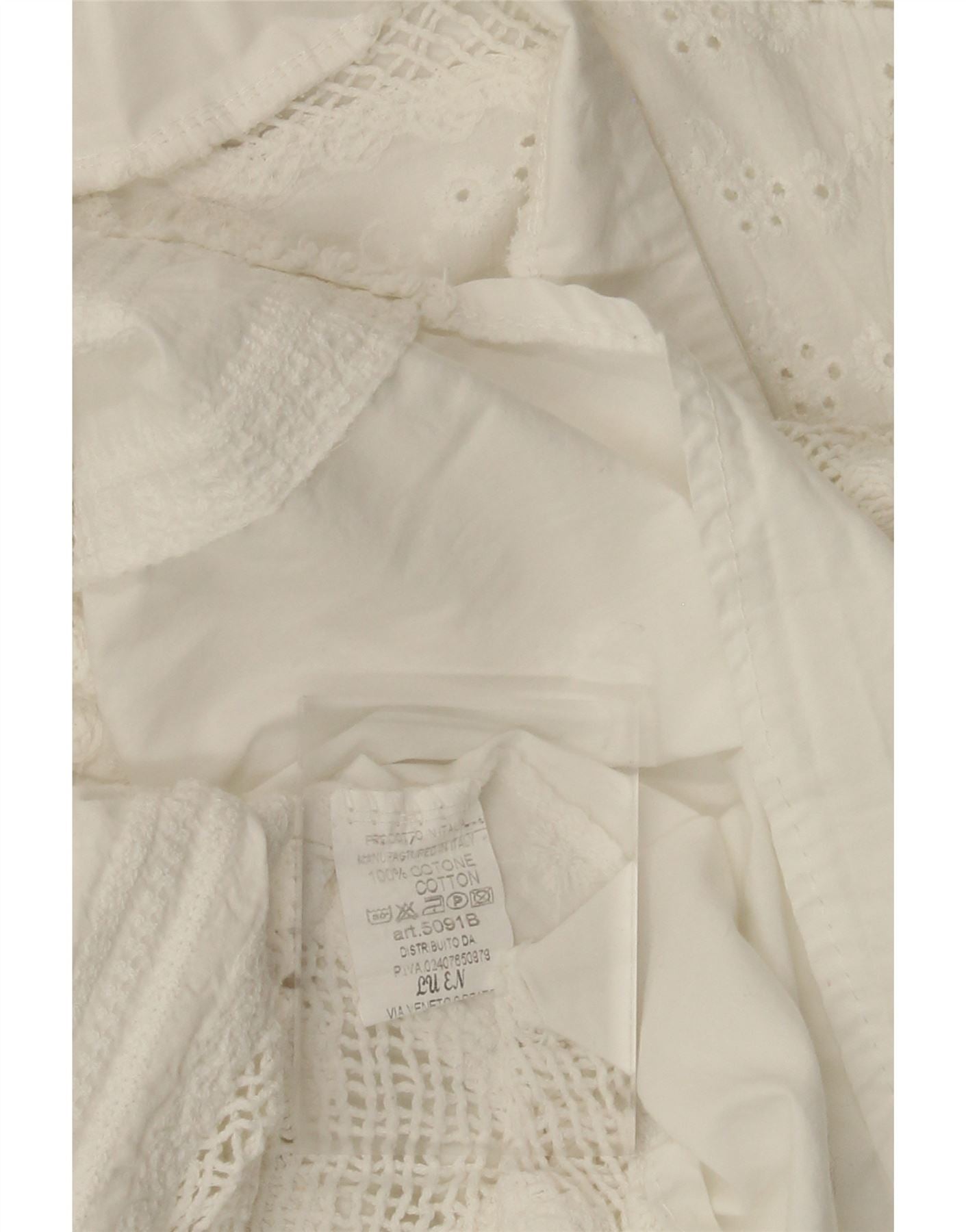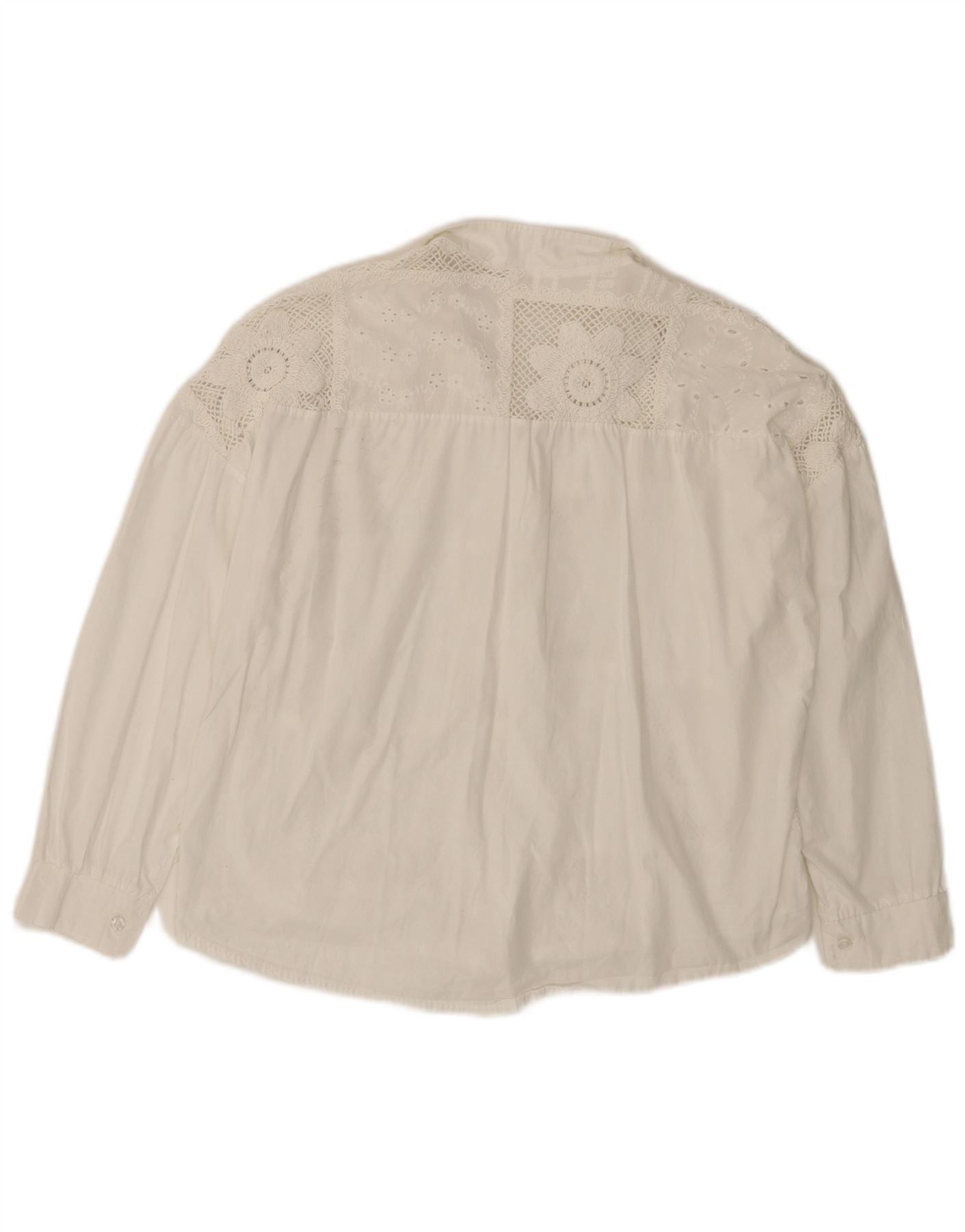 VINTAGE Femme 3/4 Manches Chemise Blouse UK 14 Moyen Blanc Floral Coton