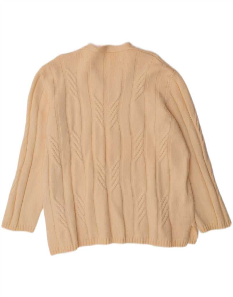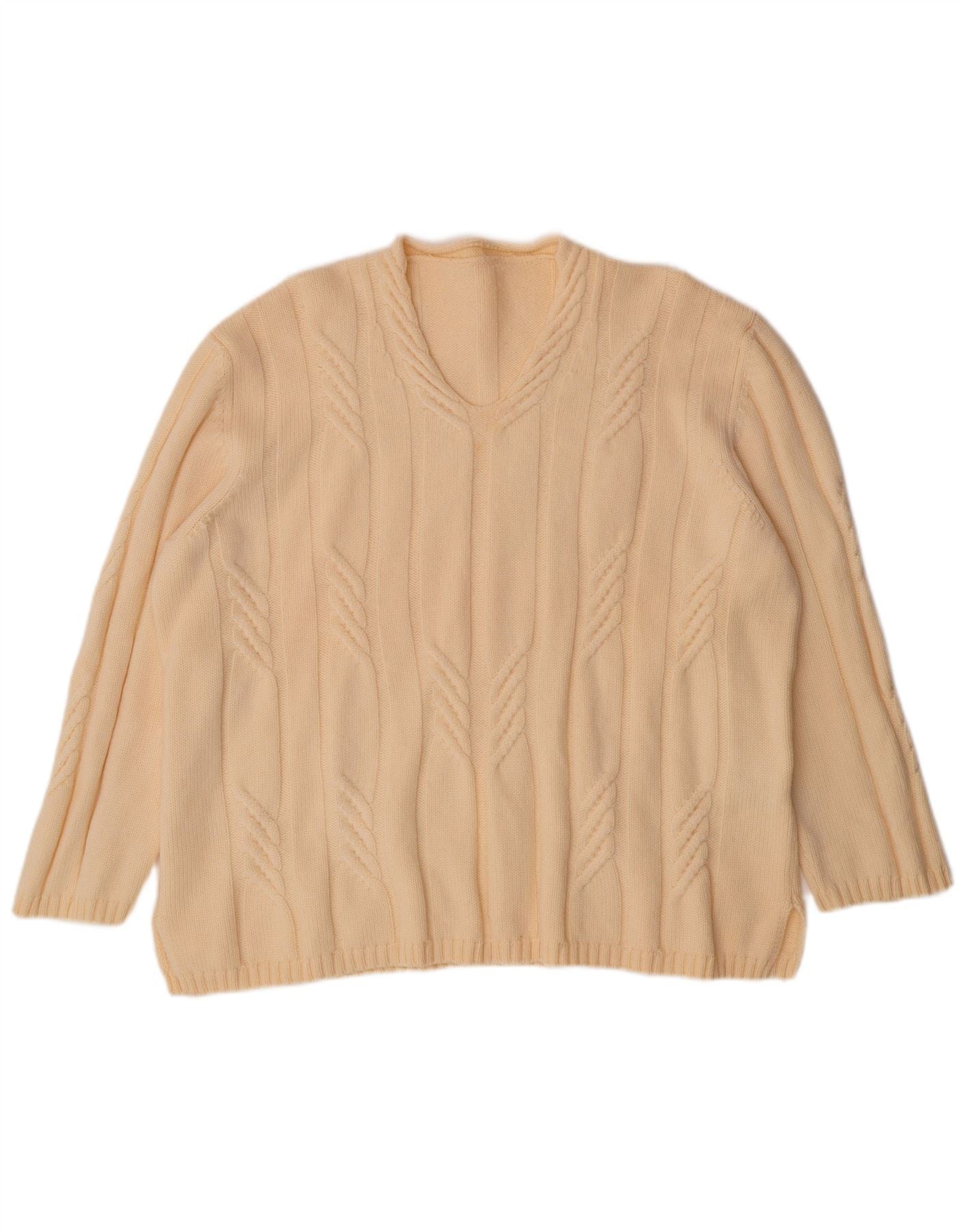 VINTAGE Pull à manches 3/4 et col en V pour femme UK 18 XL Blanc cassé
