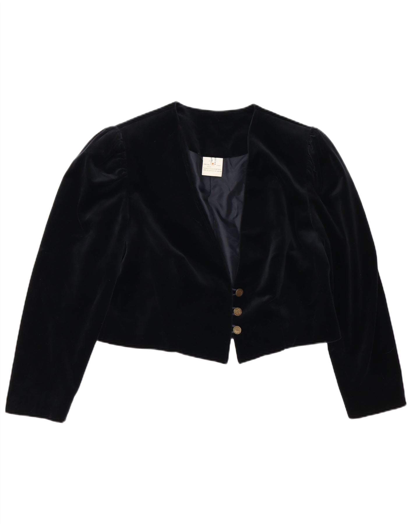 VINTAGE Femme 3 Bouton Velours Blazer Veste UK 18 XL Coton Noir