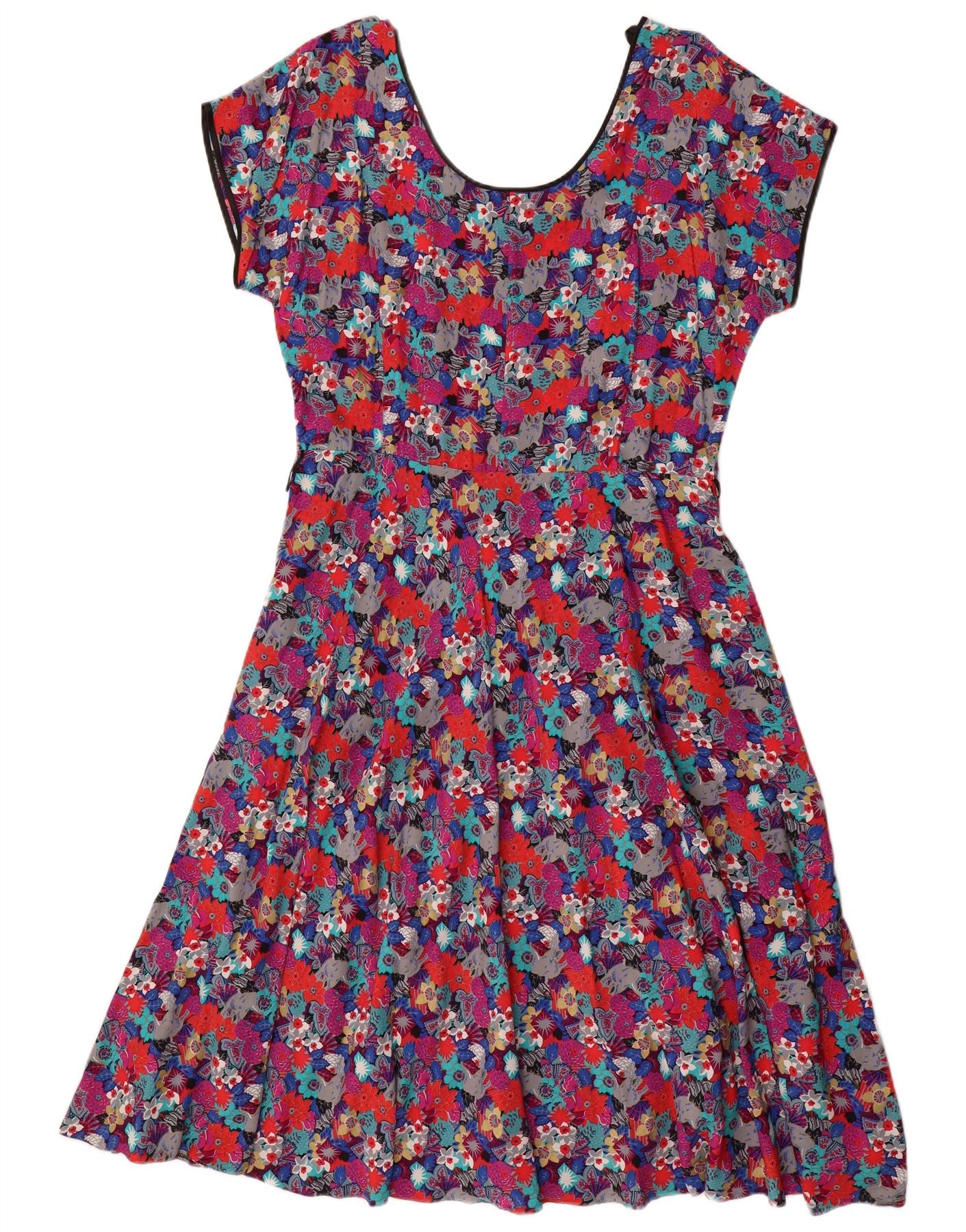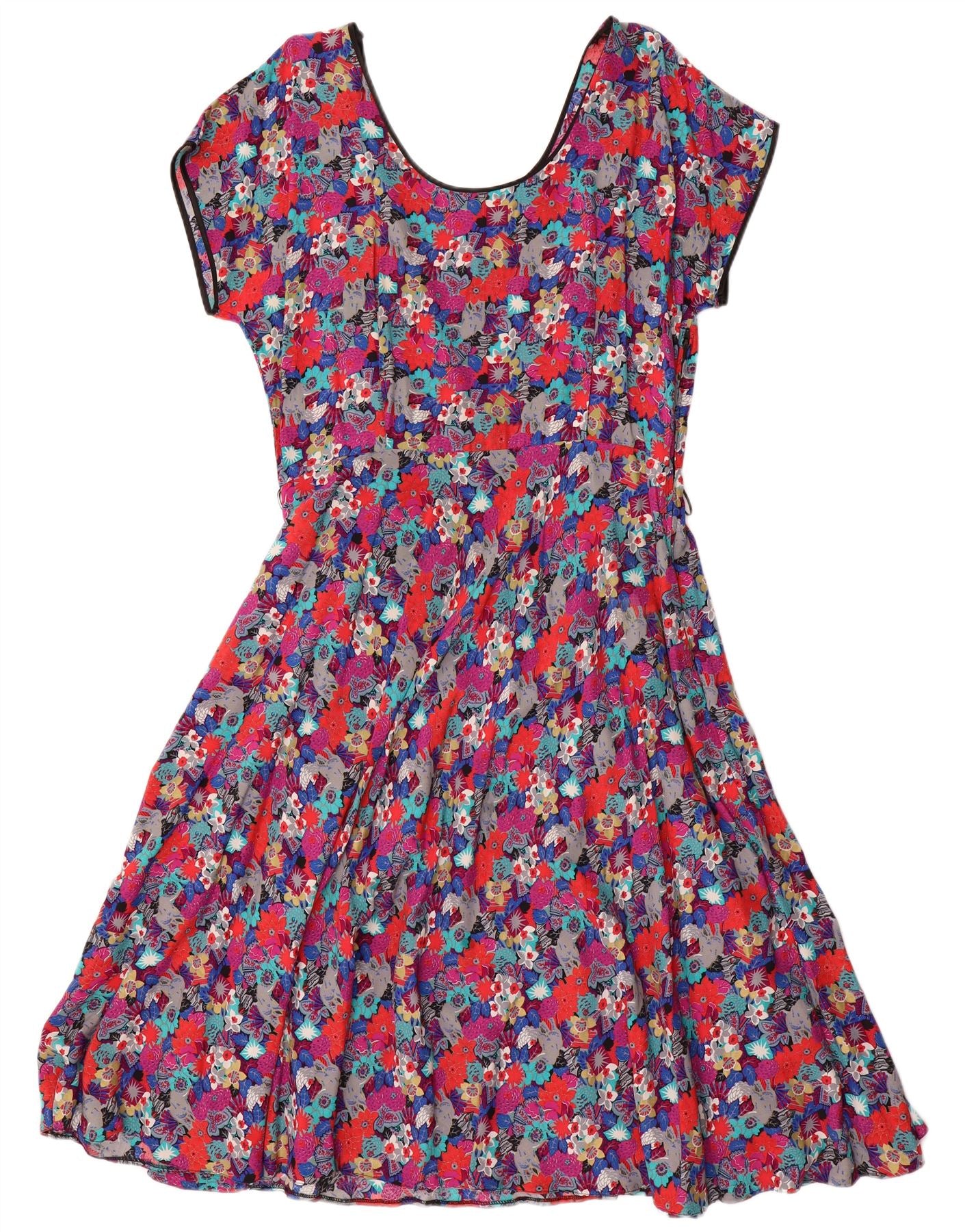 VINTAGE Robe A-Line Femme EU 44 XL Viscose Florale Multicolore