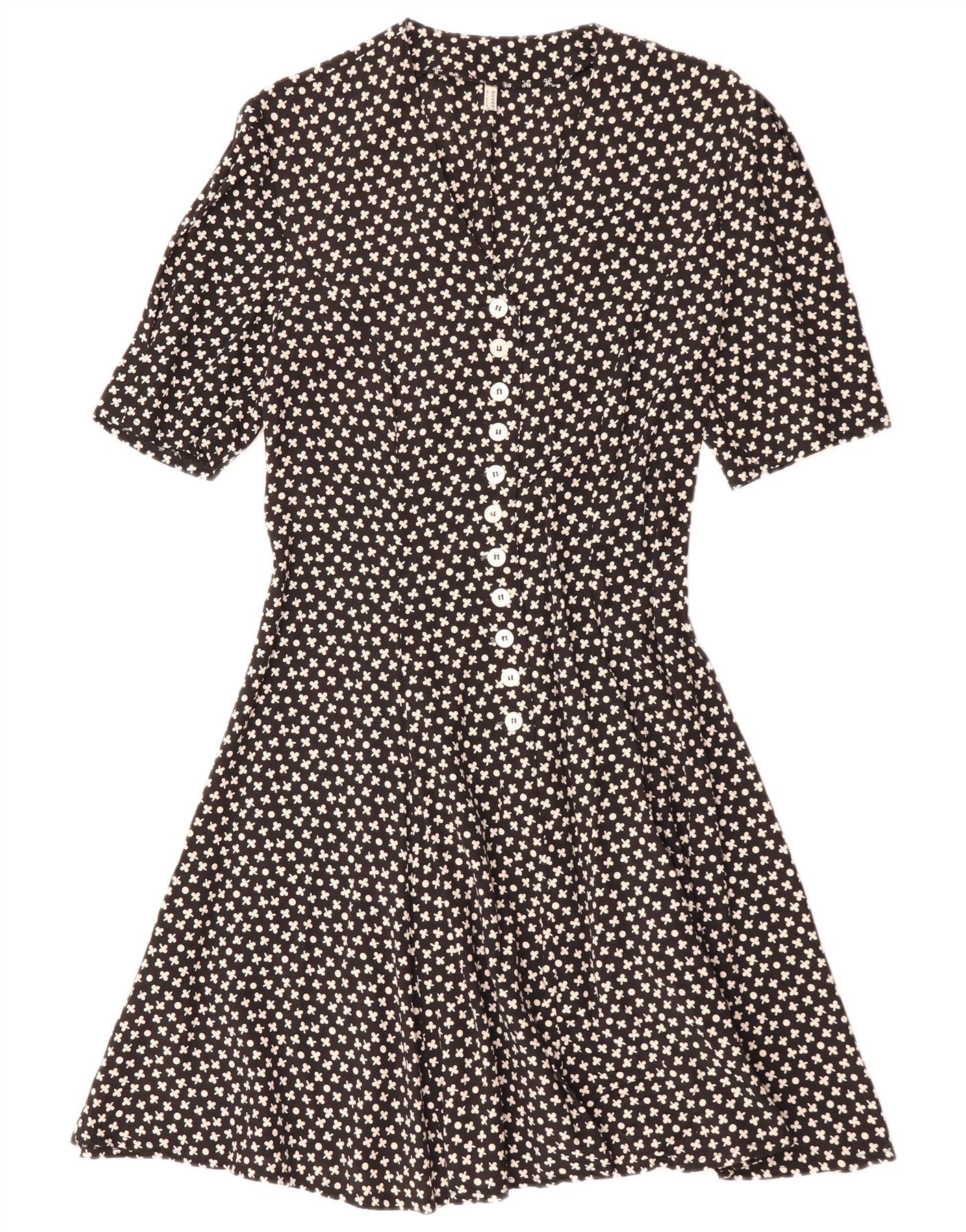 VINTAGE Robe trapèze pour femme IT 42 Medium Black Floral