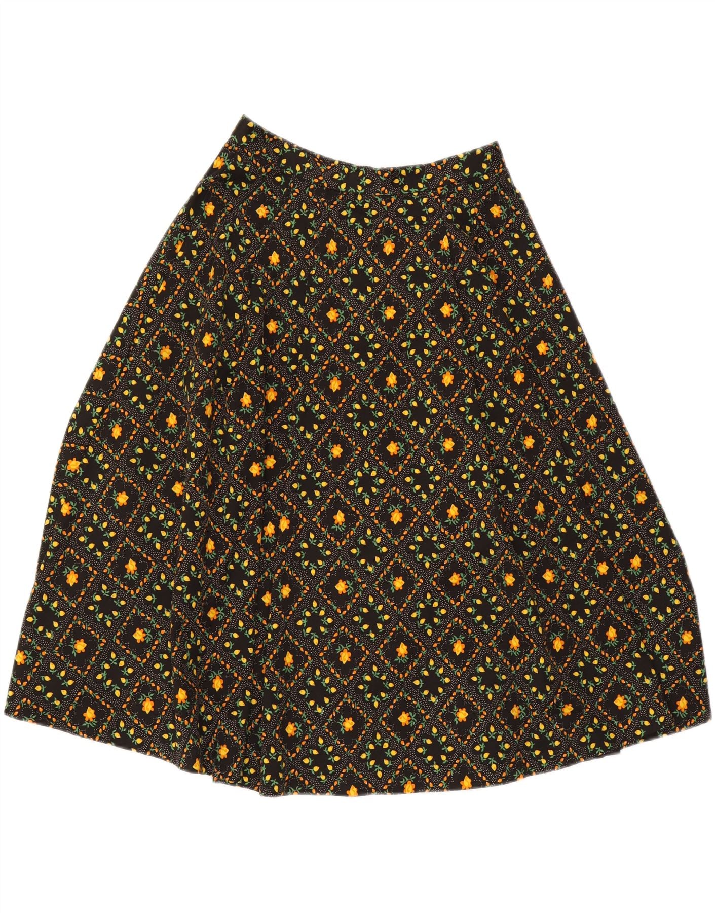 VINTAGE Jupe trapèze femme W26 Petit Noir Floral
