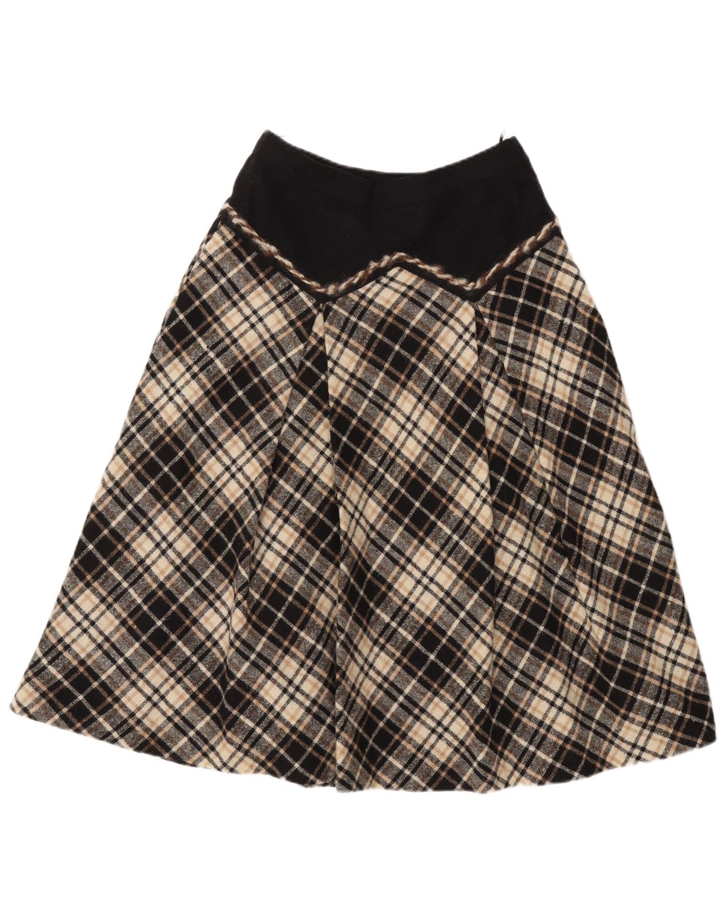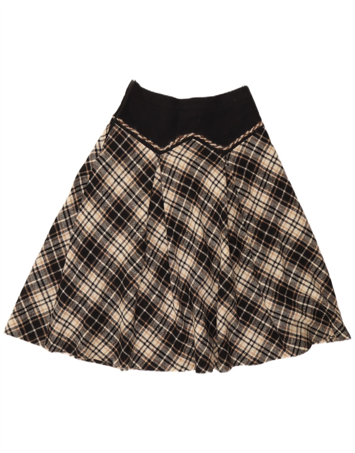 vintage Femme Jupe A-Line W28 Laine à carreaux noir moyen