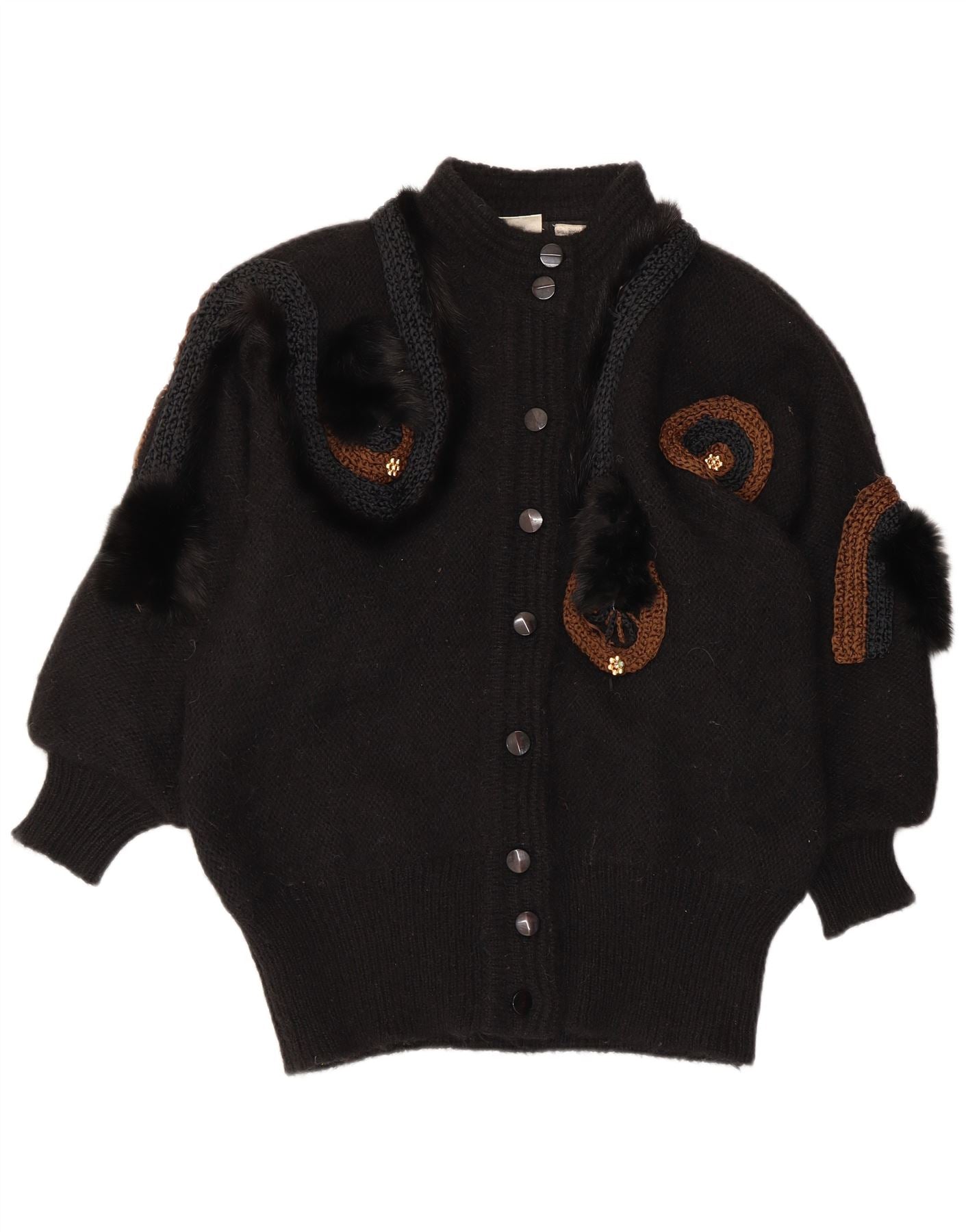 VINTAGE Femmes Motif Abstrait Cardigan Pull EU 42/44 Grand Noir
