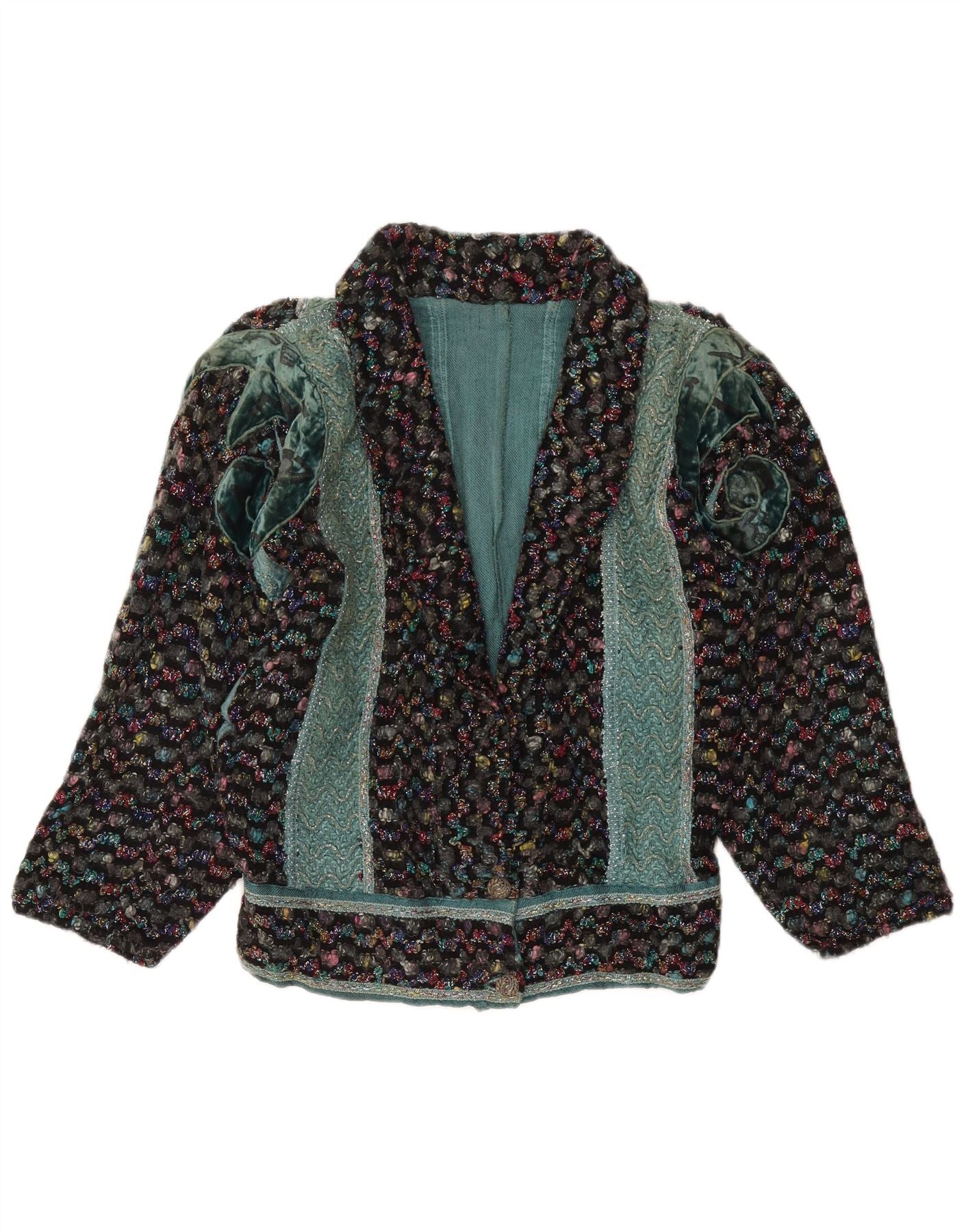 vintage Femmes Motif Abstrait Loose Fit Cardigan Pull UK 20 2XL Vert