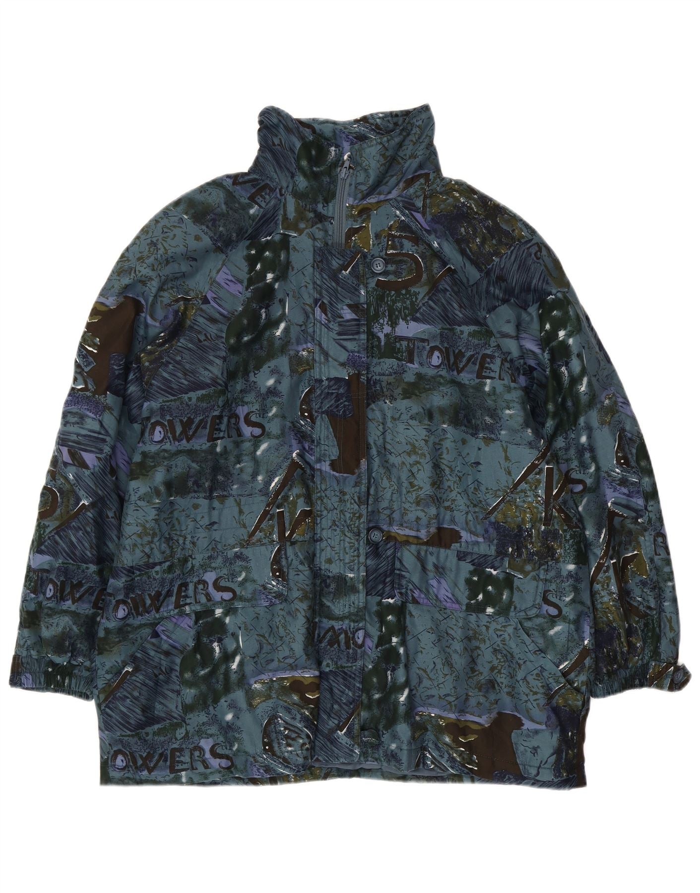 VINTAGE Femmes Motif Abstrait Manteau Coupe-Vent Surdimensionné EU 44 XL Bleu