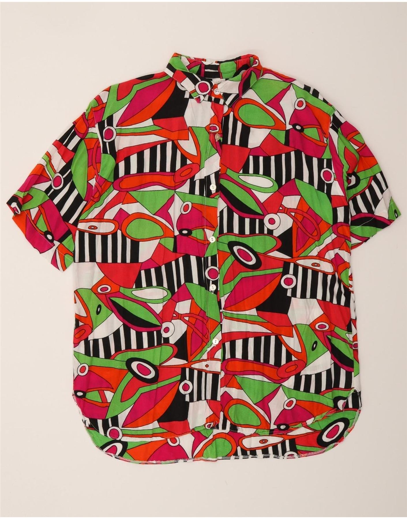 VINTAGE Femmes Motif Abstrait Chemise Blouse UK 14 Moyen Multicolore