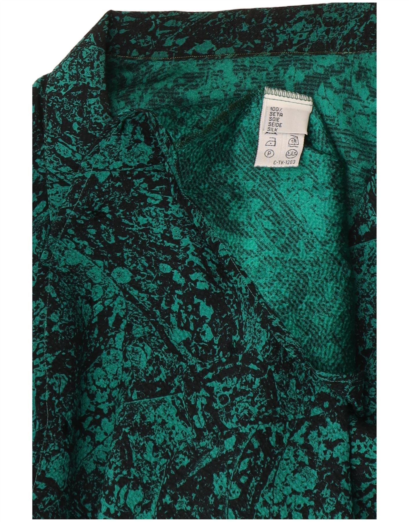 vintage Womens Abstract Pattern Shirt Blouse UK 16 Grande Soie Verte