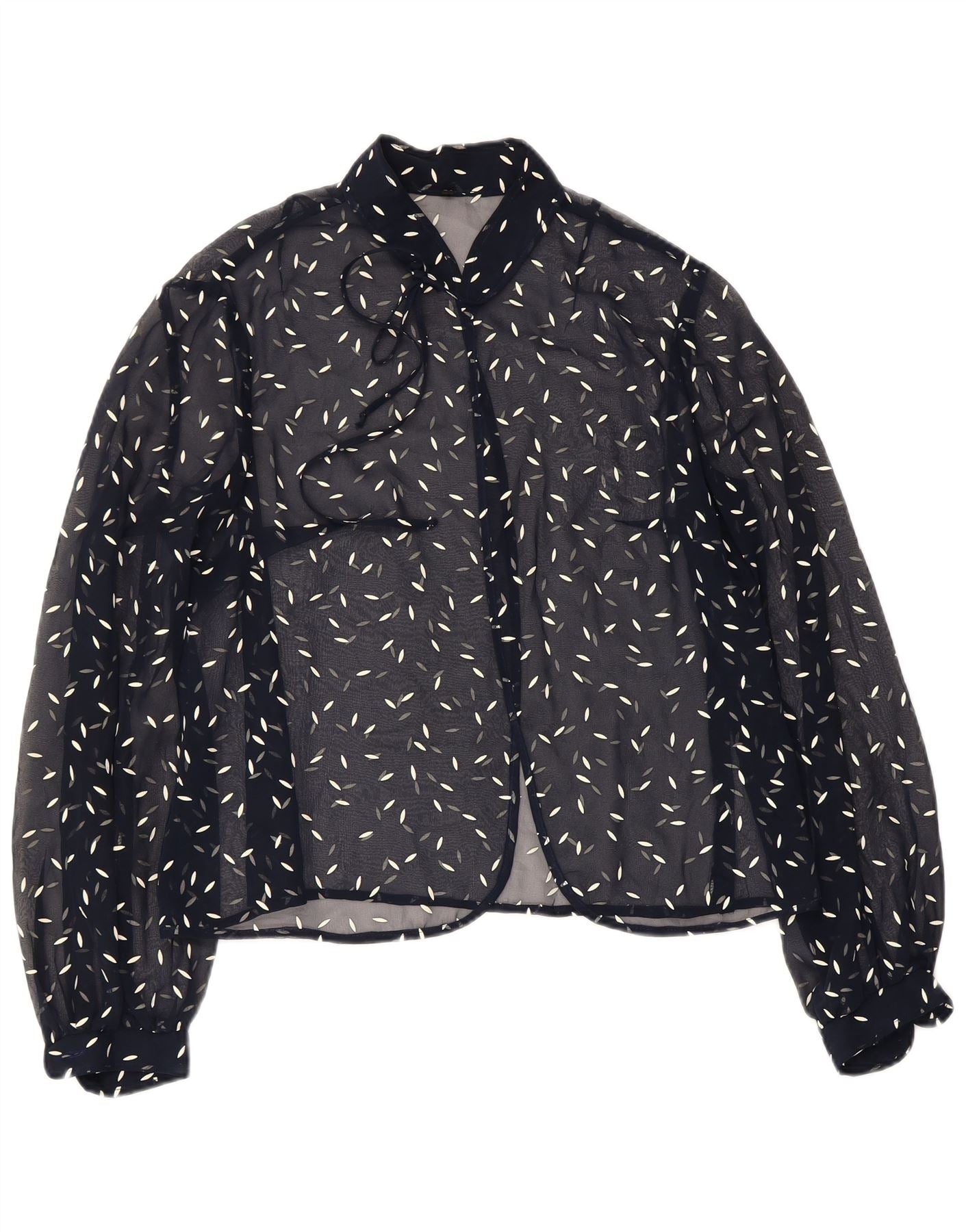 VINTAGE Femmes Motif Abstrait Chemise Blouse UK 22 3XL Bleu Marine