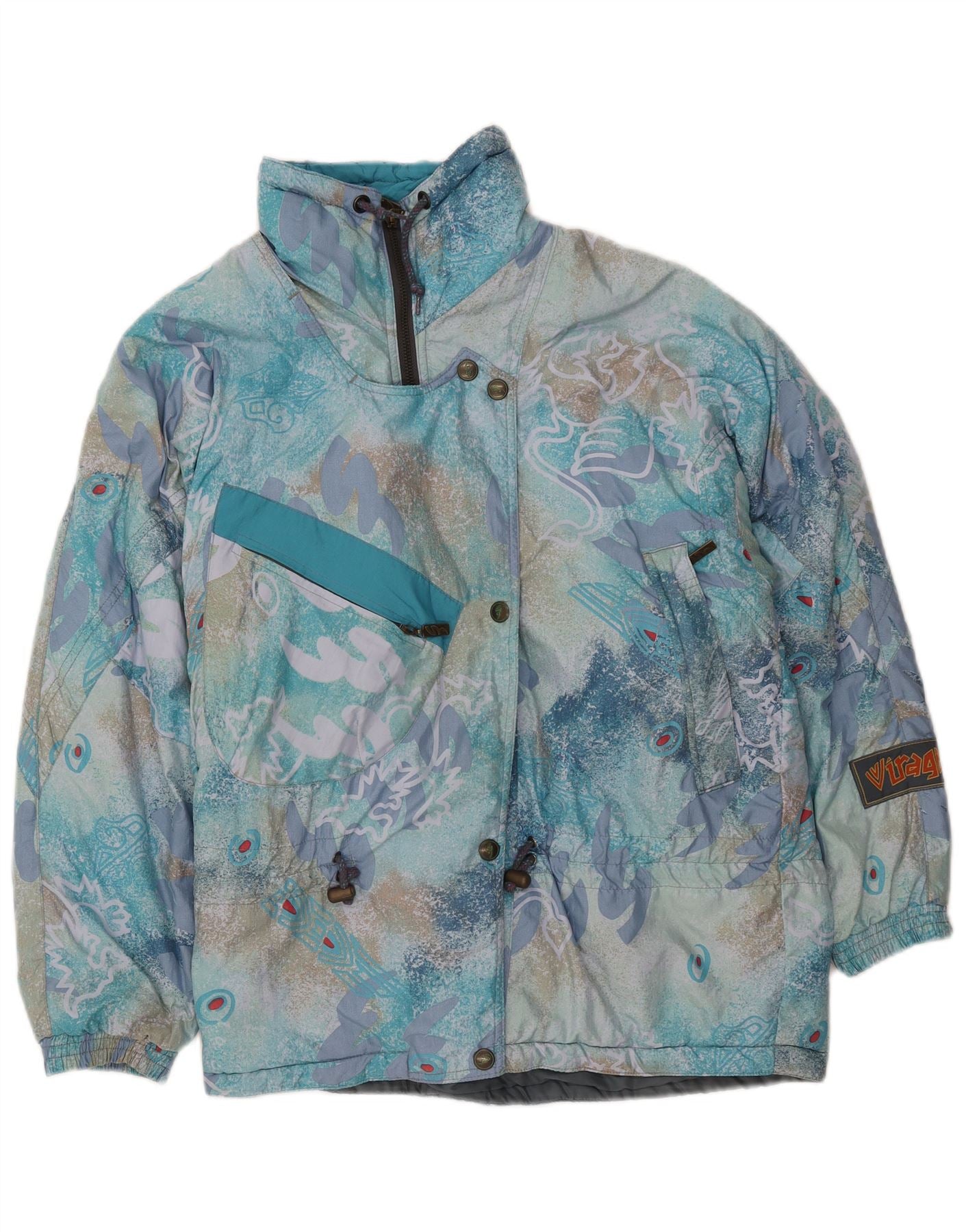 VINTAGE Veste coupe-vent à motif abstrait pour femme IT 42 Bleu moyen