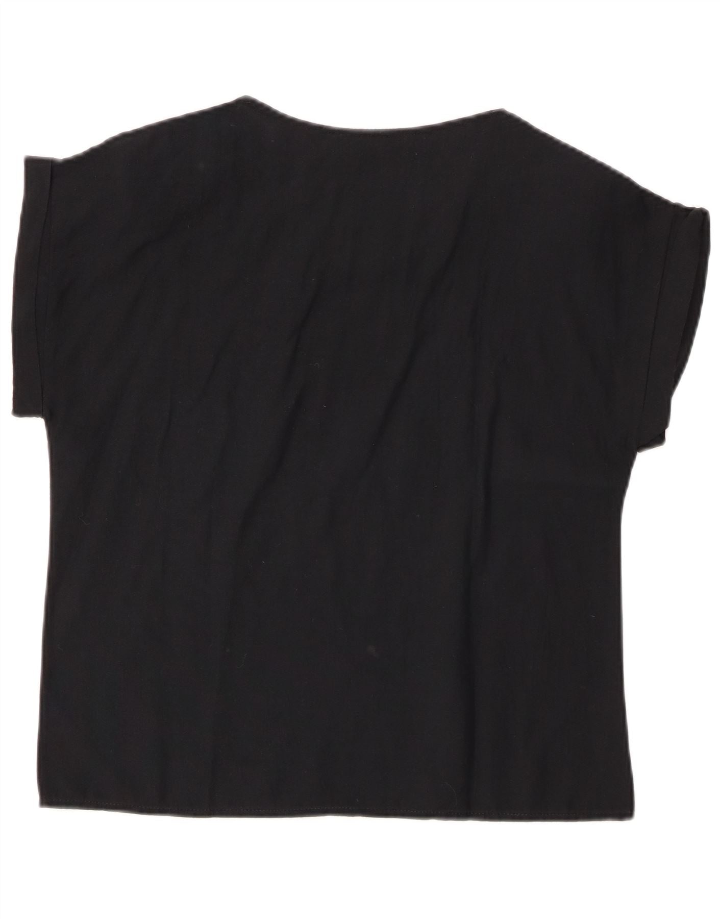 VINTAGE Chemisier Femme Top IT 44 Coton Floral Noir Moyen