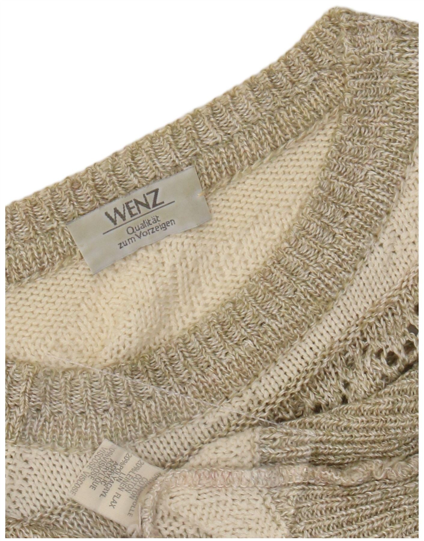 VINTAGE Femme Boat Neck Jumper Pull UK 14 Grand Coton Rayé Beige