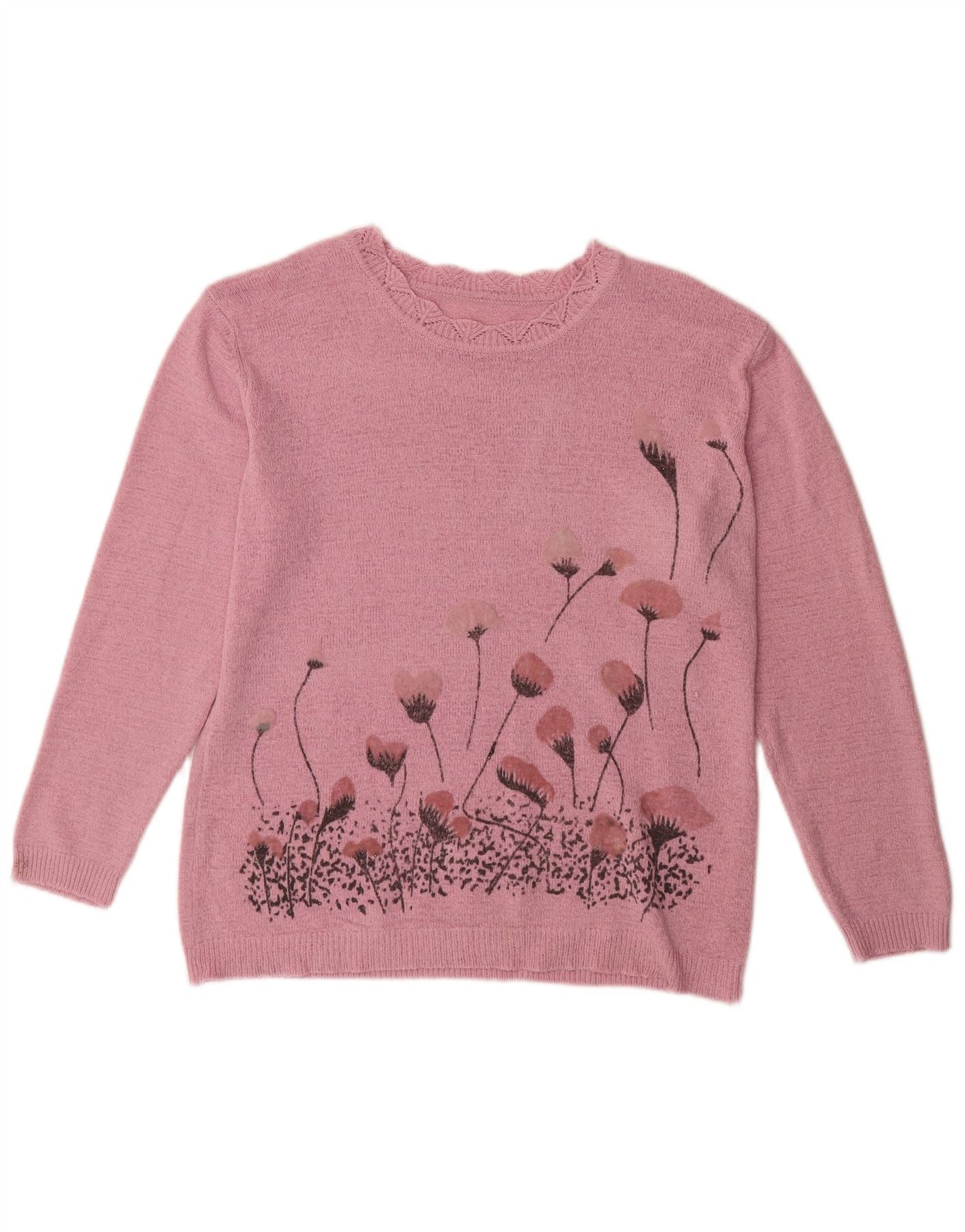 VINTAGE Femme Col Bateau Pull Pull UK 14 Grand Coton Floral Rose