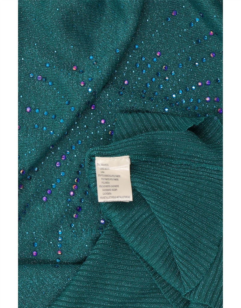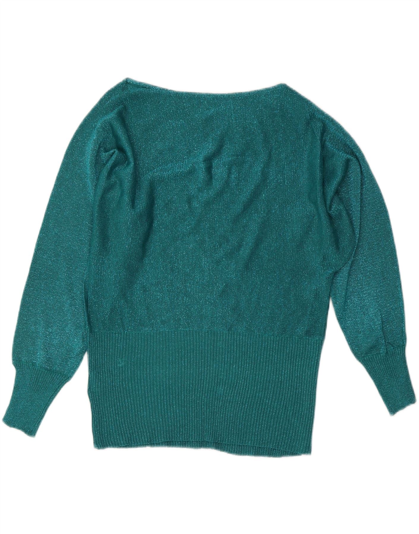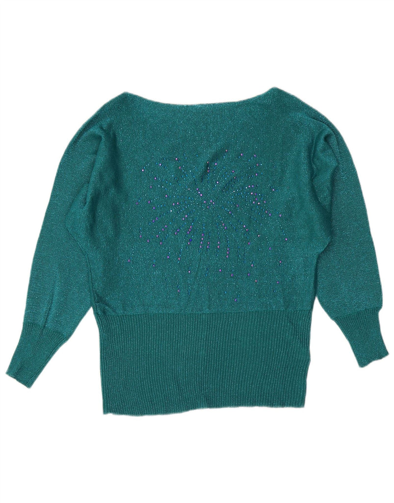 VINTAGE Femme Col Bateau Pull Pull UK 16 Grande Laine Mouchetée Verte