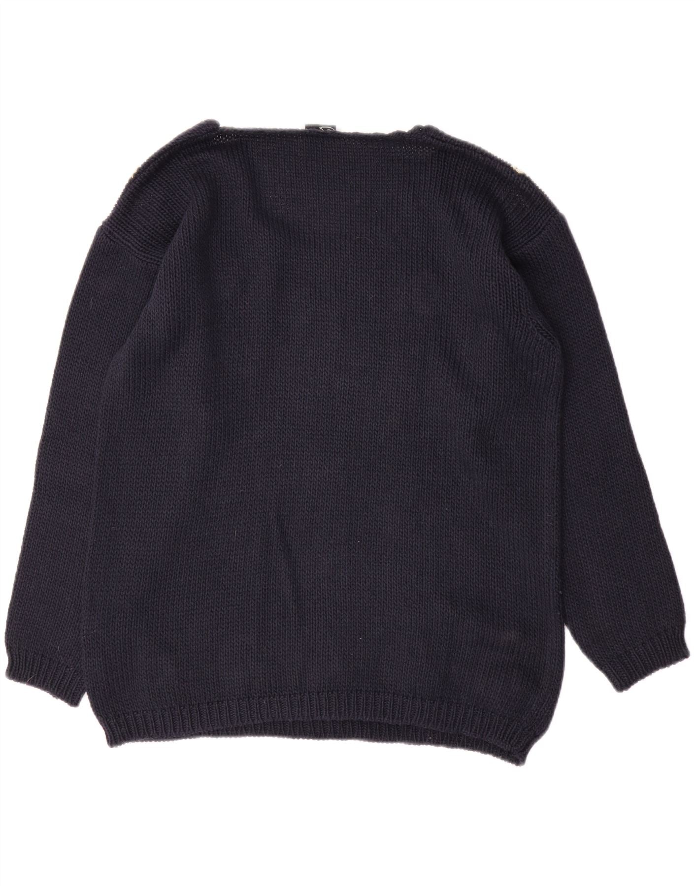 VINTAGE Femme Col Bateau Pull Pull UK 18 XL Bleu Marine Coton Floral