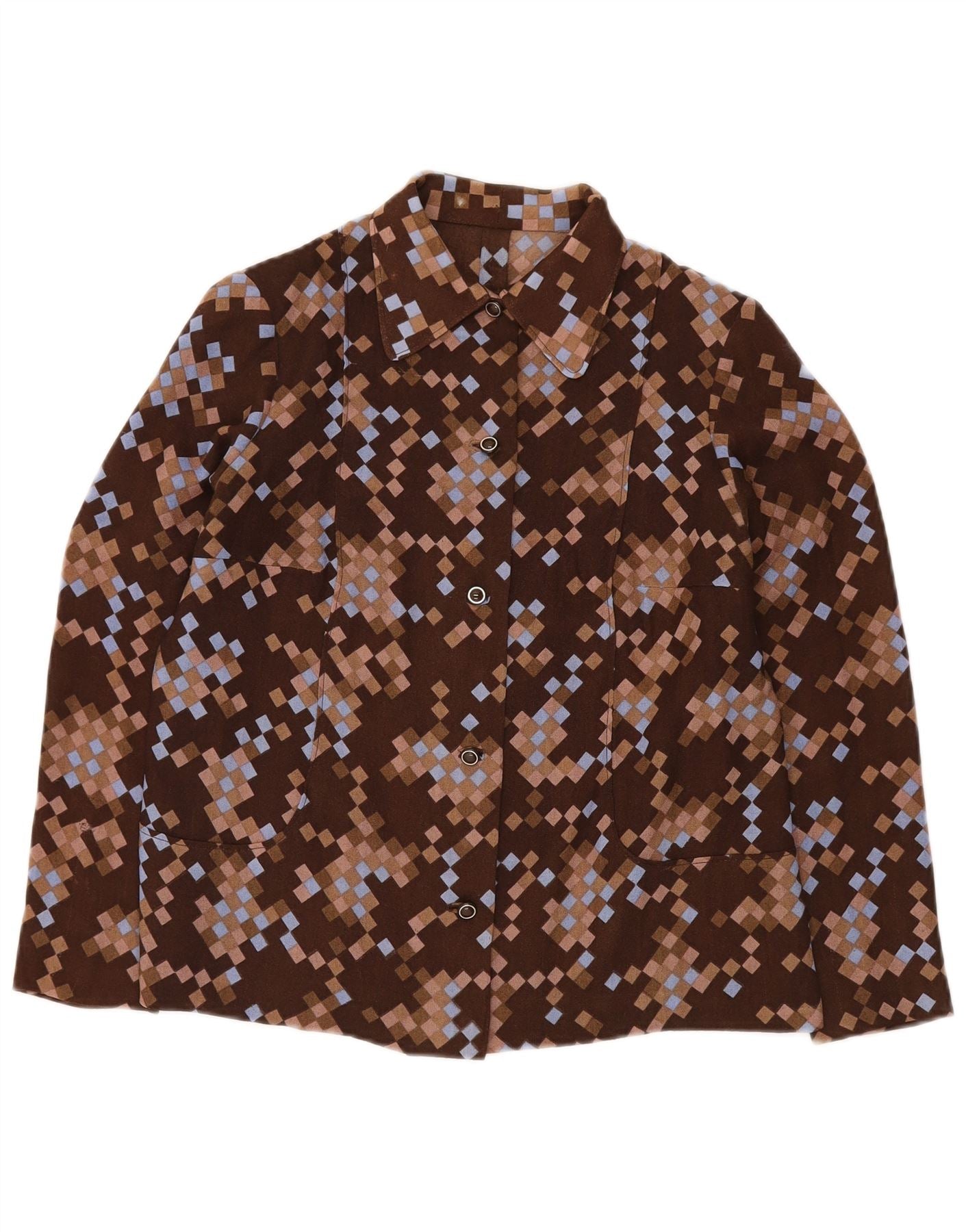 VINTAGE Veste Bomber Femme UK 12 Moyen Brun Géométrique
